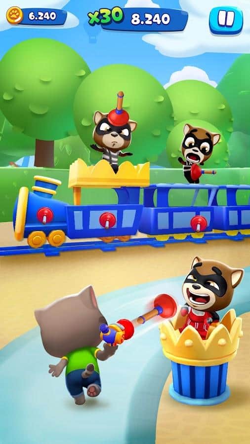 Konuşan Tom Patlama Parkı - Rakunlar, Konuşan Tom ve arkadaşlarının planlarını tamamen bozmak için harekete geçtiler ve temalı parkta gürültü çıkarırken, katılımcıların ödüllerini çalıyor, mevcut atıştırmalıkları yiyor, çeşitli atraksyonları ele geçiriyor ve diğerlerine zarar veriyorlar. Tom, Angela, Ben, Hank, Ginger ve Becca, onları parktan kovmak ve yok ettikleri her şeyi geri kazanmak için güçlerini birleştiriyor. Bu kötü adamlara ateş açtıklarında korkmayın, sizi bekleyen her türlü zorluğa uyum sağlamaya odaklanın.