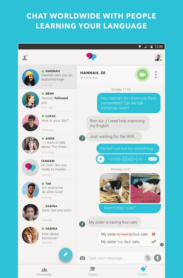Tandem: Dil Değişimi - Dünya genelindeki dilleri daha derinlemesine öğrenmek mi istiyorsunuz? O zaman bu uygulamaya kesinlikle ihtiyacınız var! Bu uygulama sayesinde dil konuşurlarıyla sohbet edebilir, daha doğrusu kişisel öğretmeniniz olacak. Temel mantık oldukça basit; siz bir dili biliyorsunuz, karşı taraf başka bir dili, ve çeviriler ve açıklamalar yardımıyla çeşitli kelimeler ve diğer birçok şey hakkında bilgi alışverişi yapabilirsiniz. Ayrıca kendi istatistikleriniz ve birçok farklı ek özellik de mevcut.