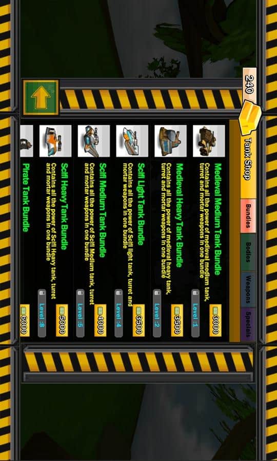 - Seçim için 10'dan fazla farklı tank ve 20 silah