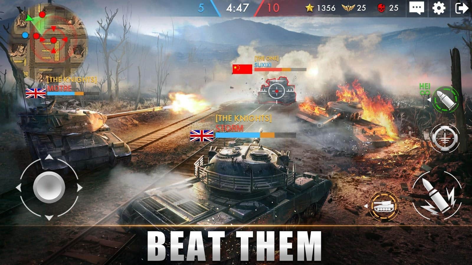 Tank atışları arasında en epik savaşlara katılın. Mümkün olduğunca fazla düşman tankını yok edin ve tankınızın özelliklerini geliştirmek veya yeni tank türlerini açmak için deneyim kazanın. Ayrıca tanklarınıza, tüm savaşın sonucunu değiştirebilecek çeşitli aksesuarlar ekleyebilirsiniz. Dünyanın dört bir yanındaki gerçek insanlarla heyecan verici savaşlar: karla kaplı alanlar, sanayi bölgeleri ve yoğun yeşilliklerle kaplı ıssız adalar - seçim sizde.