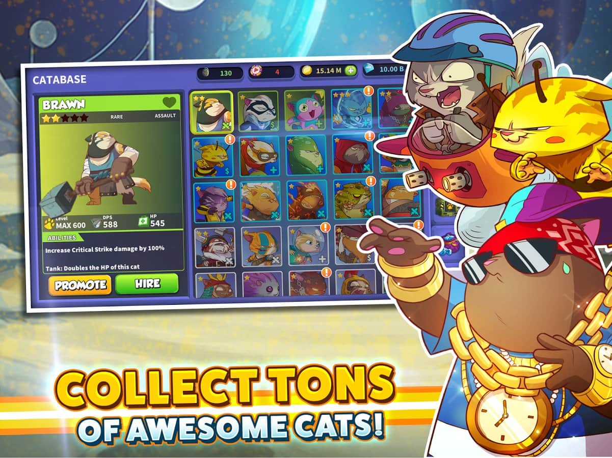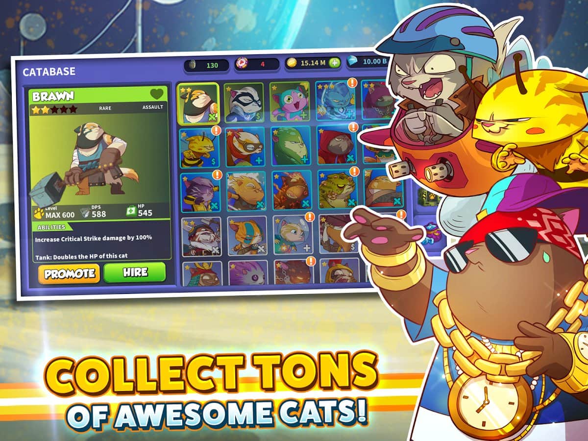 Tap Kedileri: Tembel Savaş – Android için bir tıklama oyunudur, burada galaksiyi yok olmaktan kurtarmanız gerekiyor. Bu oyunda savaşçı kedilerden oluşan ekibinizi toplayacak ve galaksinin dört bir yanında suç örgütü üyeleriyle savaşacaksınız. Kedilerin düşmanlara saldırması için cihazınızın ekranına olabildiğince hızlı tıklayın ve kahramanlarınızın seviyelerini yükseltmeyi unutmayın. Verilen görevleri yerine getirin ve kedilerinizi yeni yıkıcı yetenekler ve tekniklerle donatın. Oyunda 90'dan fazla yeni savaşçı kedi ile ekibinizi güçlendirin. Tüm seviyeleri geçin ve galaksiyi yok olmaktan kurtarın.