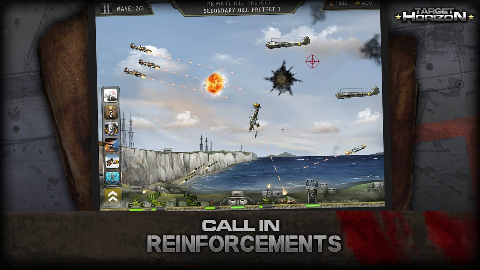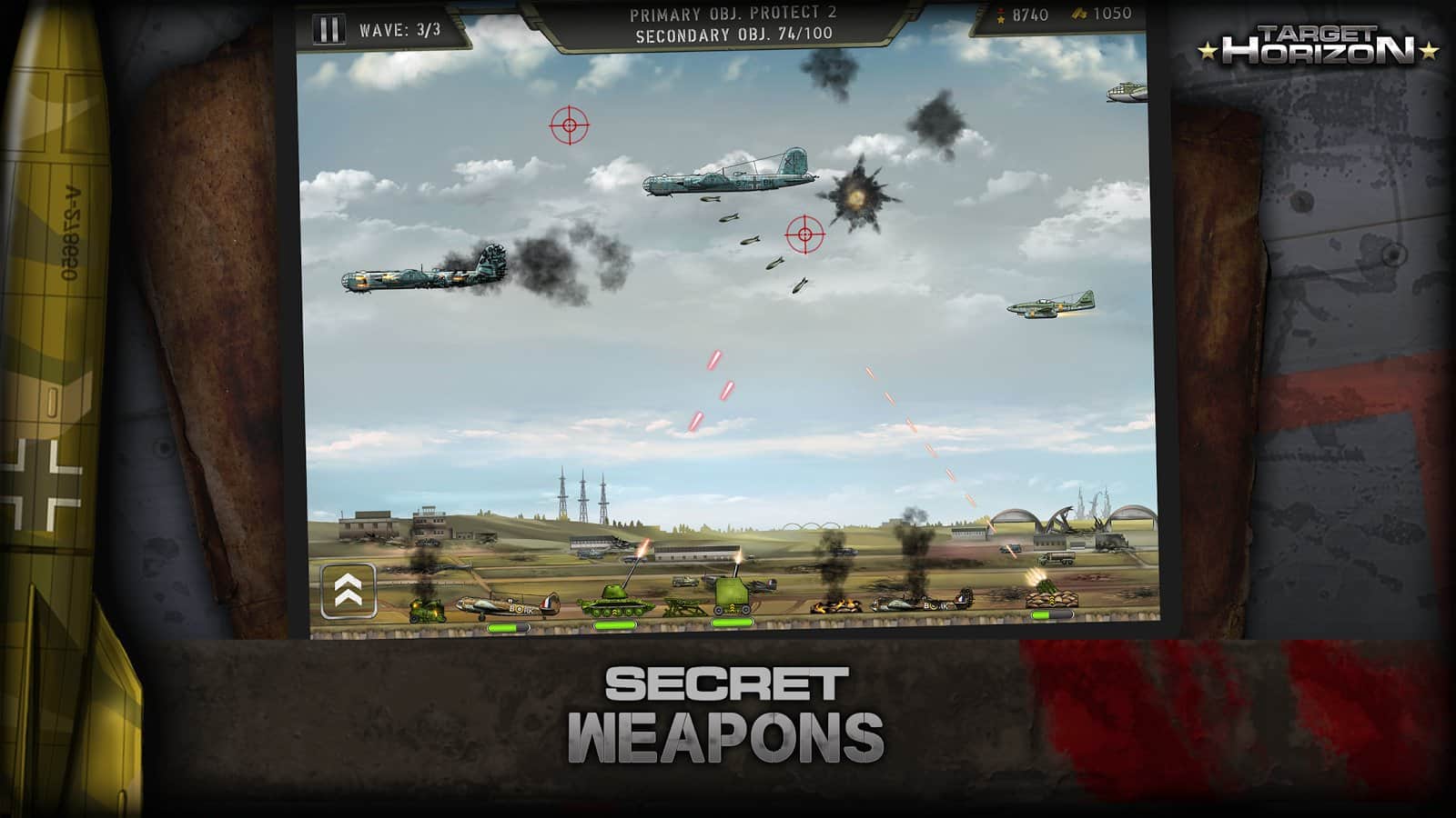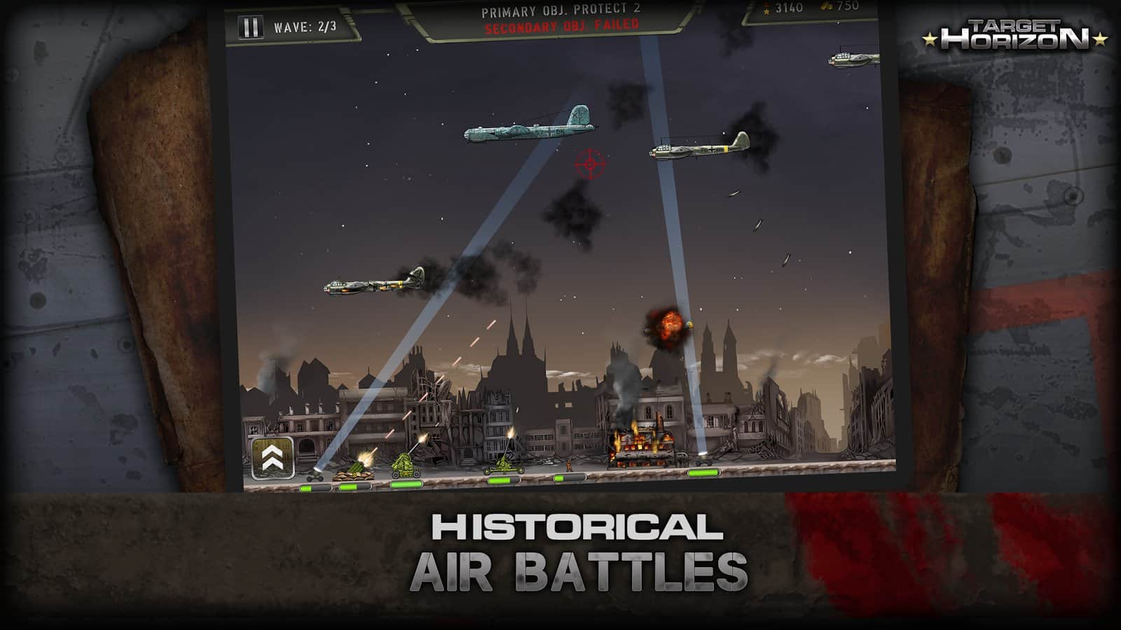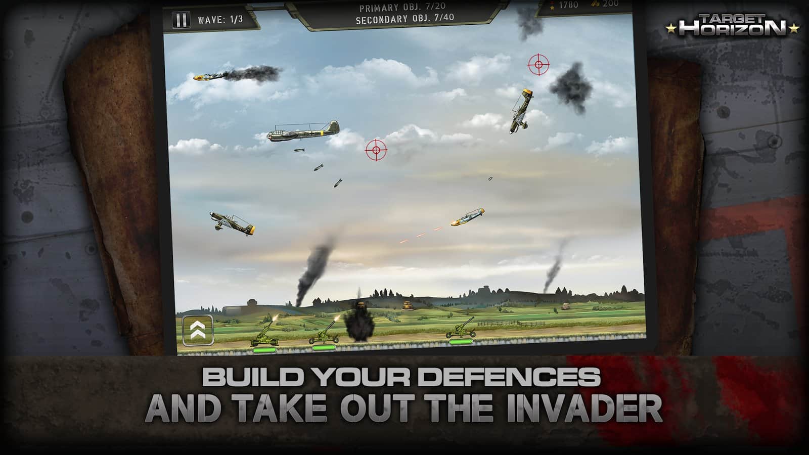 Hedef Ufku - gökyüzünü kontrol altına alın ve İkinci Dünya Savaşı dönemine ait gerçekçi uçakları düşürün. Hava savunma silahları ile düşmanla mücadele edin ve şehirlerinizi bombalamasına izin vermeyin. Savaş stratejinizi geliştirin ve hiçbir uçağın cephe hattını geçmesine izin vermeyin. Bu oyundaki iki görevden birini seçin ve güçlü bir düşmanla savaşın. Bu zorlu savaştan kahraman olarak çıkın ve en zor durumlarda bile sonuna kadar durun. Silahınızı geliştirin ve savaş gücünü artırın.