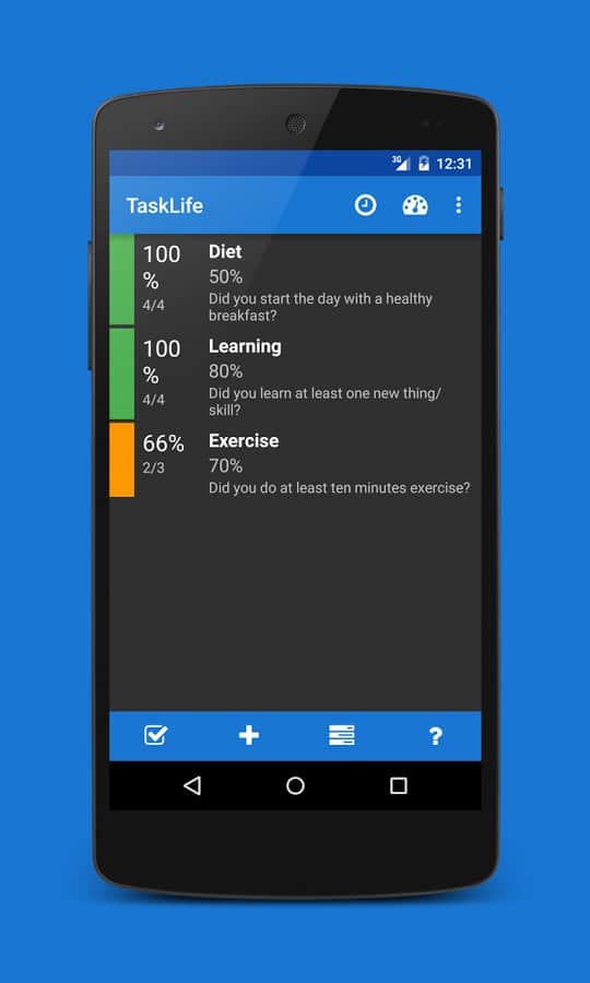 TaskLife Performans Takipçisi - Günlük veya haftalık programınızı oluşturabilir ve bunu yerine getirmeyi unutmazsınız. Haftada 2 kez spor salonuna gitmek veya diyet programına uymak istediğinize dair bir hatırlatıcı oluşturun ve yaptıklarınızı işaretleyin. Böylece, istediğiniz günlük rutine daha kolay alışabilirsiniz ve bugün planladığınız bir şeyi yapmadığınızda, yarın bunu yapmayı unutmazsınız. Bu şekilde, yaptıklarınızı takip etmeniz daha kolay olacak ve zamanı kaybetmeden başarıya ulaşacaksınız.