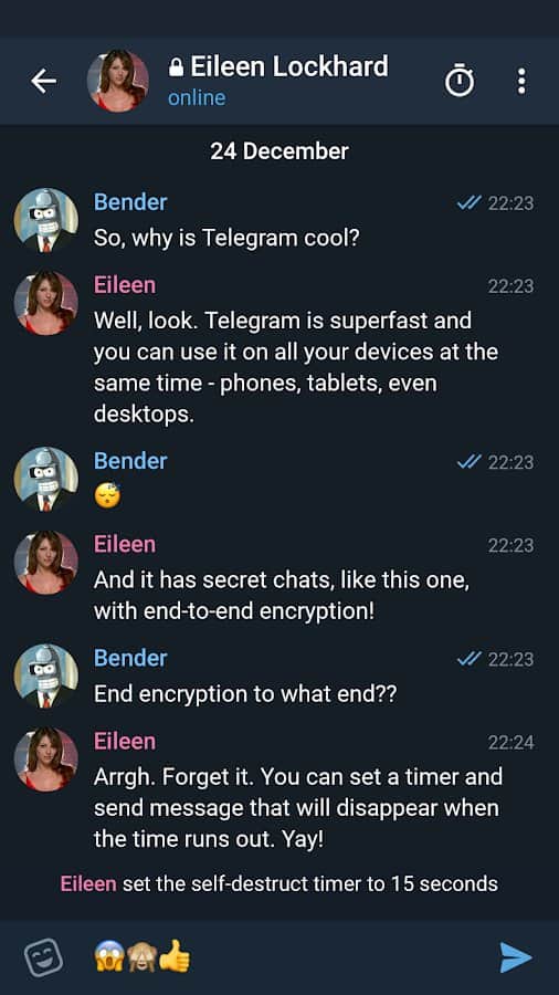 - Gelişmiş şifreleme protokolü sayesinde yazışmalarınızın güvenliği