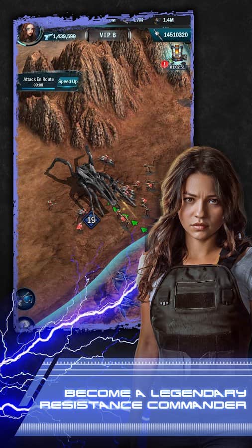 Terminator: Kıyamet Günü - Dünya - 2041, tüm insanlık yok olmanın eşiğinde. Dünya, Terminatorler ve ölümcül Makineler tarafından ele geçirildi ve onlar, canlı olan her şeyi yok edene kadar durmayacak! İnsanlar arasında 'Direniş' adında bir cesur grup oluşuyor, hayatta kalma hakları için savaşmayı amaçlıyorlar. Ve tam da senin, onların lideri olman gerekecek, kendi üssünü kur, en iyi ordunu topla, yeni teknolojileri keşfet ve bölgeni genişlet. Tek başına zafer kazanmak oldukça zor olacak, hayır, kimse senin sahip olduğun en iyi komutan olduğunu sorgulamıyor. Ama yine de, İttifak'ın desteğini alman gerekecek, onları makinelere karşı birlikte savaşmaları için ikna et. Ve kim bilir, belki de yarın dünya tamamen farklı görünecek. İnsanlığın geleceği senin ellerinde