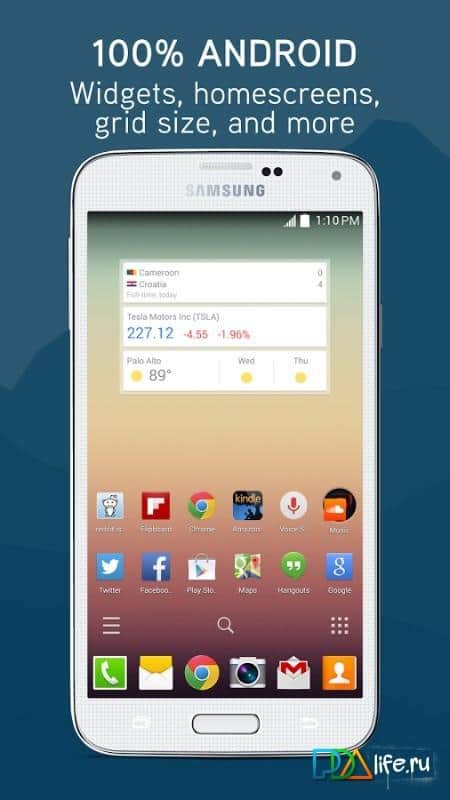 Bu arayüzü benzersiz ve beklenmedik olarak adlandırmak zor, çünkü büyük ölçüde Google Now Launcher'ı kopyalıyor, ancak hoş tasarımı ve akıllı telefon/tablet kaynaklarına dost yaklaşımı onu oldukça ilginç bir çözüm haline getiriyor.