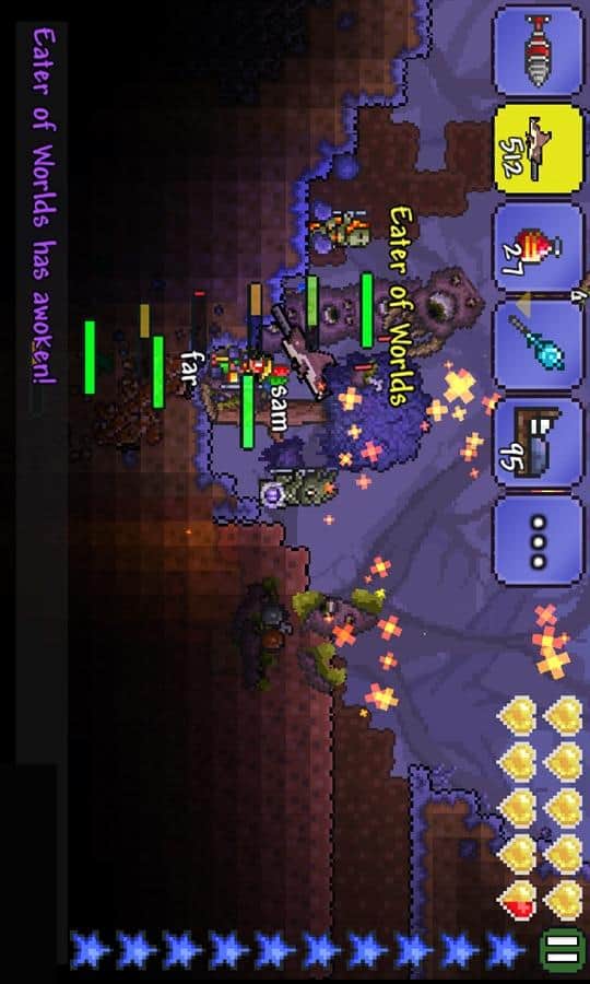 Terraria, sizi harika bir dünyada karşılayacak ve orada kötü patronlarla savaşacaksınız. Bu dünya, istediğiniz her şeyi yaratabileceğiniz bir tuval gibi. Gökyüzündeki yüzen adalara gidin, orada evler inşa edin, yeni silahlar arayın ve kahramanınızı çeşitli yeteneklerle donatın. Maceranıza hemen başlayın ve oyunda 80'den fazla olan korkunç canavarlarla savaşın. Oyunda bolca bulunan blokları ve diğer inşaat malzemelerini kullanarak devasa açık dünyalarda seyahat edin.