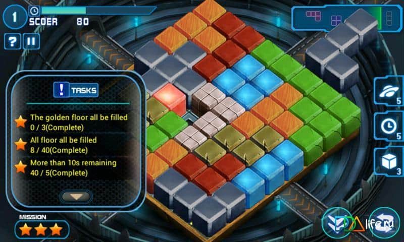 Tetris Uzay-3D Bloklar - Android için klasik tetris oyunu, iyi bir 3D grafiği ile. Her şey normal tetris oyunundaki gibi, sadece burada 3D küpleri uzayda hareket ettireceksiniz. Oyunun amacı, kısa bir süre içinde mümkün olduğunca fazla küpü alanda yerleştirmektir. Oyunda iki mod ve ek bonuslar ile birlikte, tamamladığınızda ek puanlar kazanacağınız ilginç görevler bulunmaktadır.