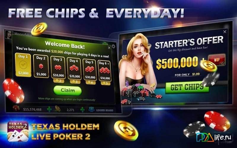 Texas Holdem - Canlı Poker 2 - Texas Holdem oyununa hoş geldiniz. Bu oyun, Android'deki en iyi pokerlerden birinin devamıdır. Las Vegas tarzında çeşitli turnuvalar sizi bekliyor; burada dünyanın dört bir yanından binlerce diğer oyuncuya karşı istediğiniz zaman mücadele edebilirsiniz. Oyun, güzel grafikler ve masalar, kartlar ve oyun malzemelerinin çekici tasarımı ile doludur. Ayrıca, oyuna kendi avatarınızı yükleyebilirsiniz. Oyunda, beceri seviyenize göre rakip seçebileceğiniz bir liderlik tablosu da var. Tüm poker oyunu gerçek zamanlı olarak gerçekleşiyor, bu da oyuncuların herhangi bir dolandırıcılık yapmasını önlüyor.