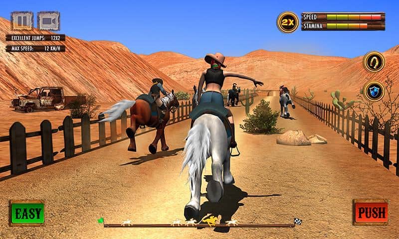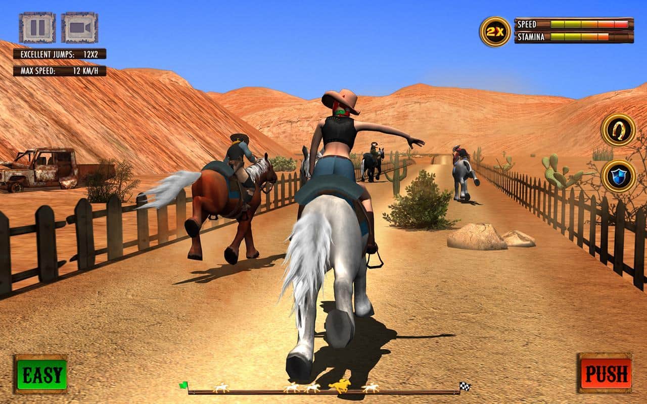 Texas Yaban At Yarışı 3D – Android için bir at yarışı oyunu, burada Teksas'ta bulunacak ve yerel yarışmalara katılacaksınız. Kendinize uygun bir at seçin ve bu oyunda en iyi olma hakkı için yarışı başlatın. Atınızı dörtnala koşmaya gönderin ve rakiplerinizi geçin, bu sırada gerçek bir kovboy gibi hissedin. Özgürlük ruhunu hissedin ve oyunun çeşitli mekanlarında ilerleyerek birçok engeli aşmaya çalışın, bitiş çizgisine ulaşmaya çalışın. Bitiriş çizgisine ilk gelen siz olursanız, daha hızlı ve çevik yeni bir at kazanma fırsatına sahip olacaksınız. Oyunda 6 karakter, çok sayıda at, çeşitli görevler bulunmaktadır ve ayrıca oyun kolay kontrol ile sizi mutlu edecek.
