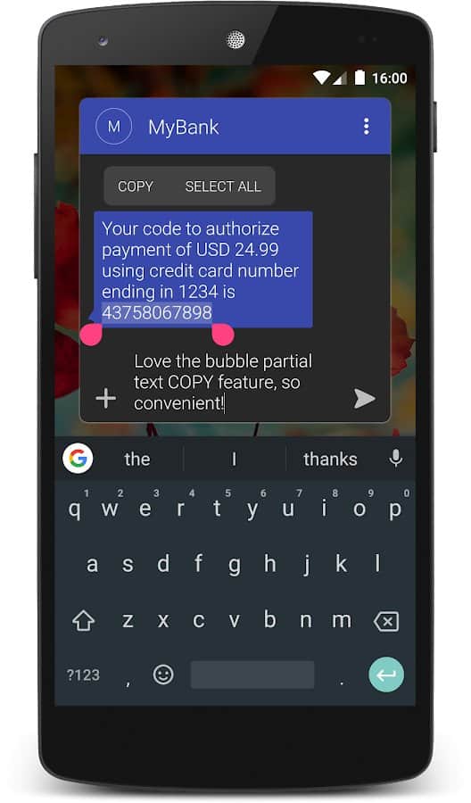 Yorumlar ile Textra SMS üzerinde Android
