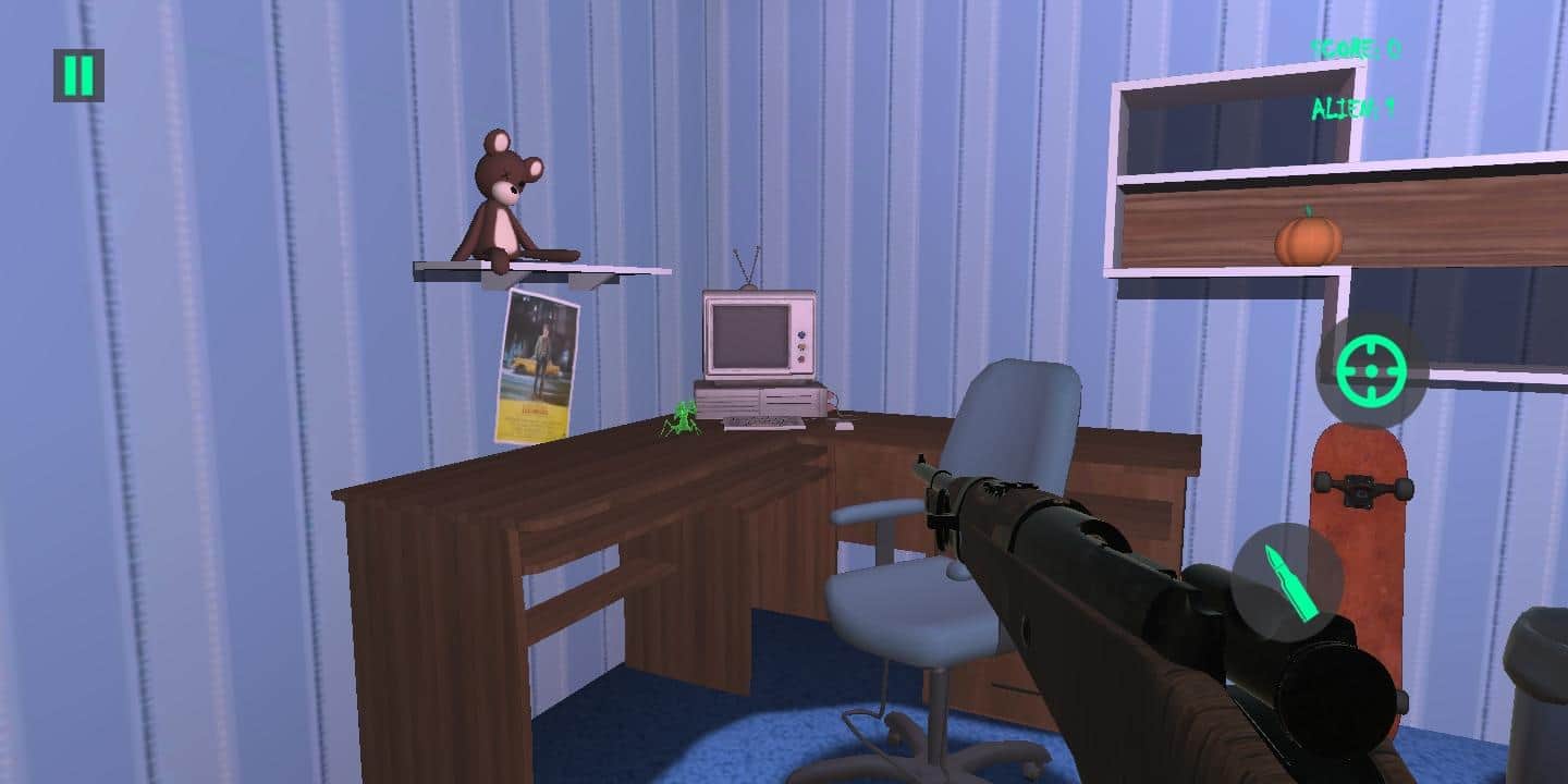 İçindeki Uzaylı - Son zamanlarda odanızda oldukça garip şeylerin olduğunu fark ettiniz ve bu durumdan hiç memnun değilsiniz. Bir sabah uyandığınızda, rafta ve diğer erişilebilir yerlerde tamamen yeni nesnelerin belirdiğini keşfettiniz, bu yüzden şimdi bu mistik olayın gerçek nedenini bulmak ve ondan kurtulmak istiyorsunuz. Bir süre sonra, bunun çeşitli nesneler şeklinde kamufle olan uzaylıların işi olduğu ortaya çıktı. Gerçek olmayan nesneleri bulun ve yok edin, böylece istenmeyen misafirlerden kurtulmuş olacaksınız.