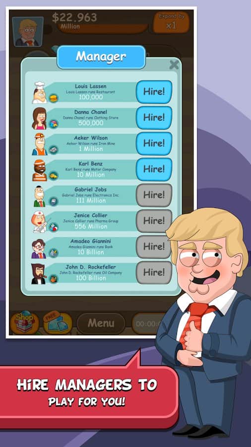 Büyük Kapitalist – Android için bir tıklayıcı, burada kapitalist rolünü üstleneceksiniz. Bu oyunda ana göreviniz, paranızı doğru alanlara yatırmak ve yeni sermayeler biriktirmektir. Tüm insanlığın en temel tüketim maddesi olan buğday ile dünya çapında tekelleşmeye başlayın. Buğday üretimini artırmak için telefonunuzun veya tabletinizin ekranına tıklayın ve paranızı petrol, giyim ve gıda gibi yeni sektörlere yatırın. Sermayenizin nasıl büyüdüğünü izleyin ve kârı artırmak için yeni teknolojiler uygulayacak yöneticileri ve idarecileri işe alın.