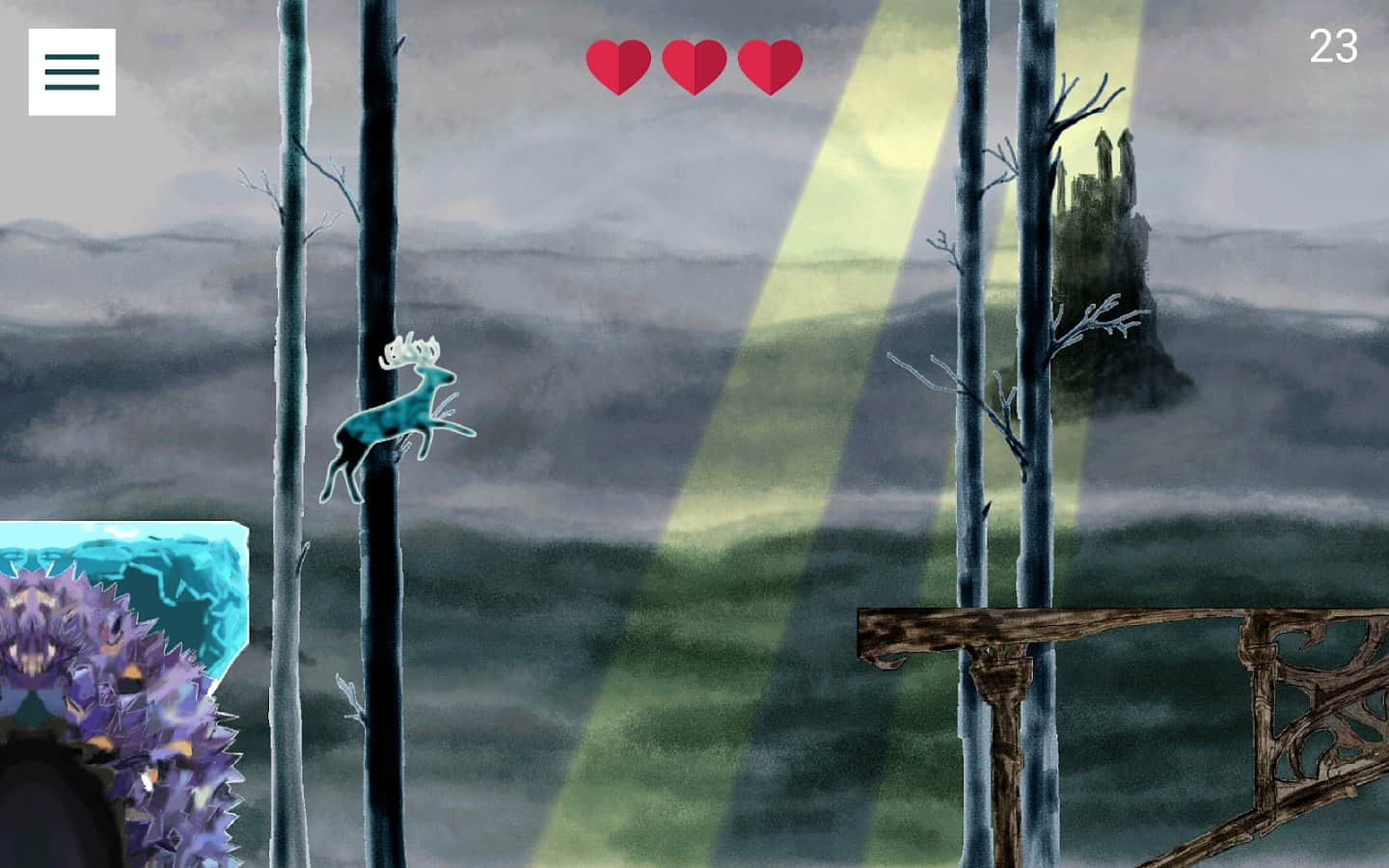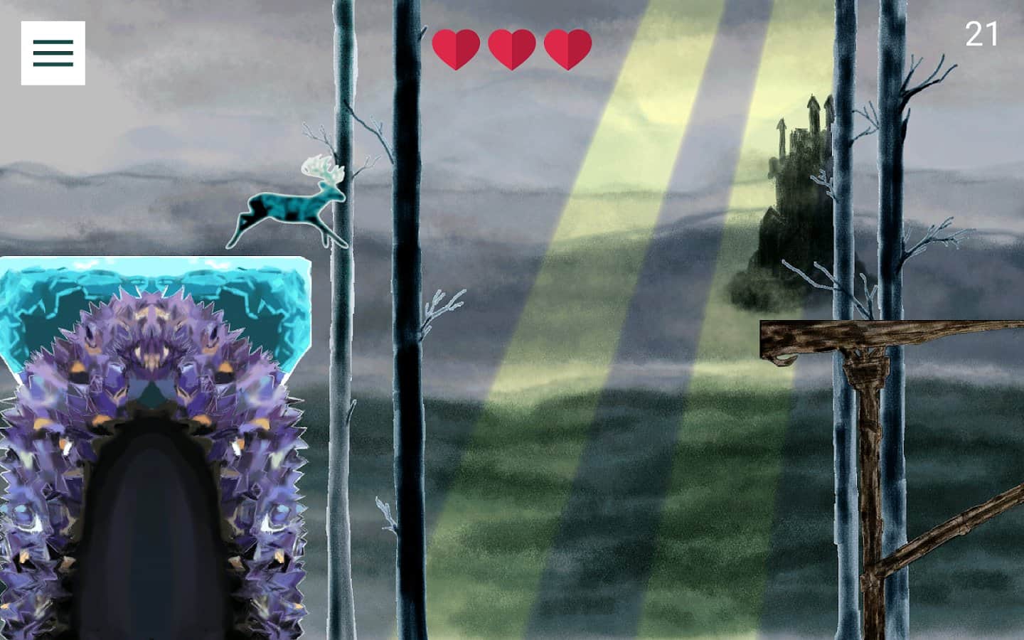 Geyik – Android için bir platform oyunu, burada geyik koşusunu yönetecek ve ona yolda engellerden kaçınmasında yardımcı olacaksınız. Güzel ve sürekli değişen dünyalarda koşun ve yolunuzu kaybetmeden geçmeye çalışın. Kahramanı ileriye götürün ve geyik derin bir uçurumu veya tehlikeli bir düşmanı aşmak için telefonunuzun veya tabletinizin ekranına tam zamanında dokunun. Tepkinizi ve parmak hızınızı geliştirin ve inanılmaz sonuçlar elde edin. Her yeni seviyede oyunun zorluğu artacak ve kendi rekorunuzu kırmak için oldukça çalışmanız gerekecek.