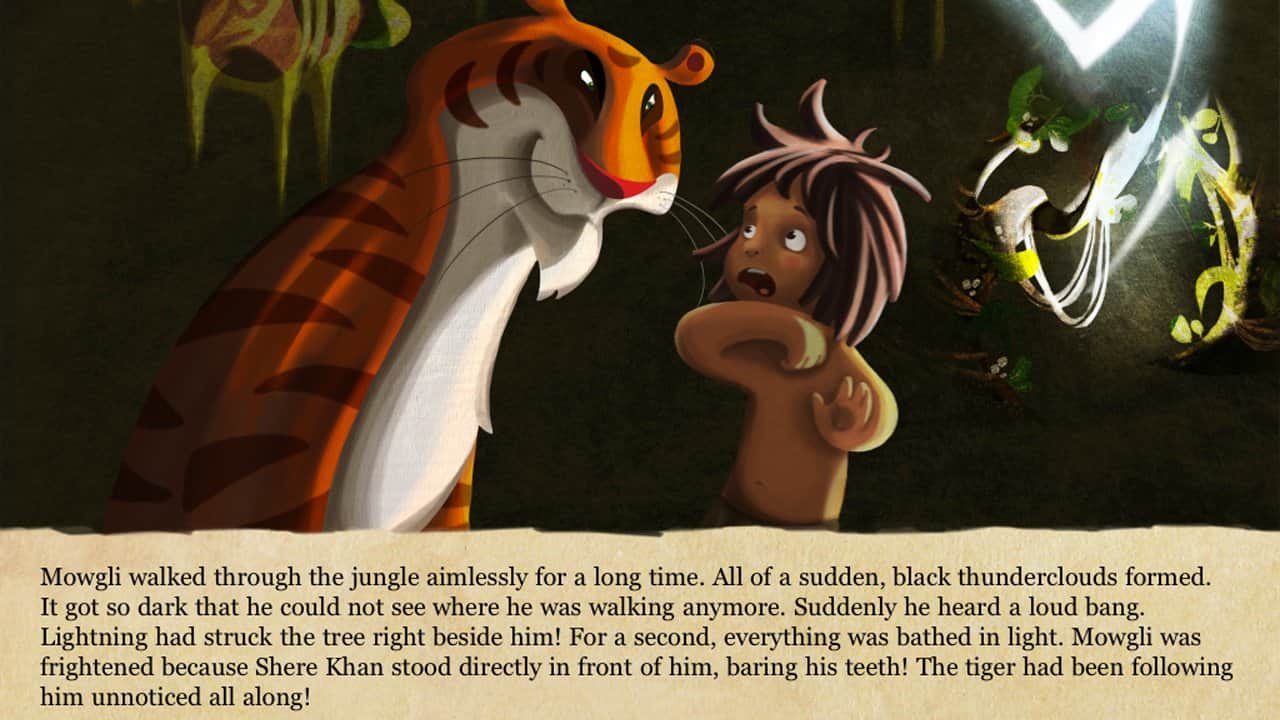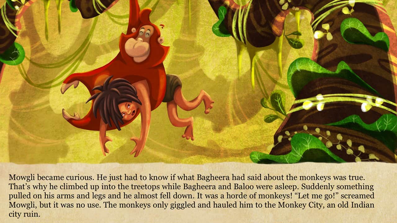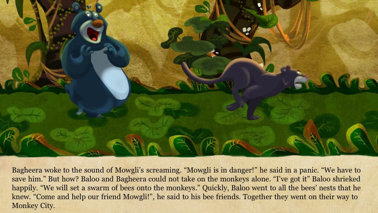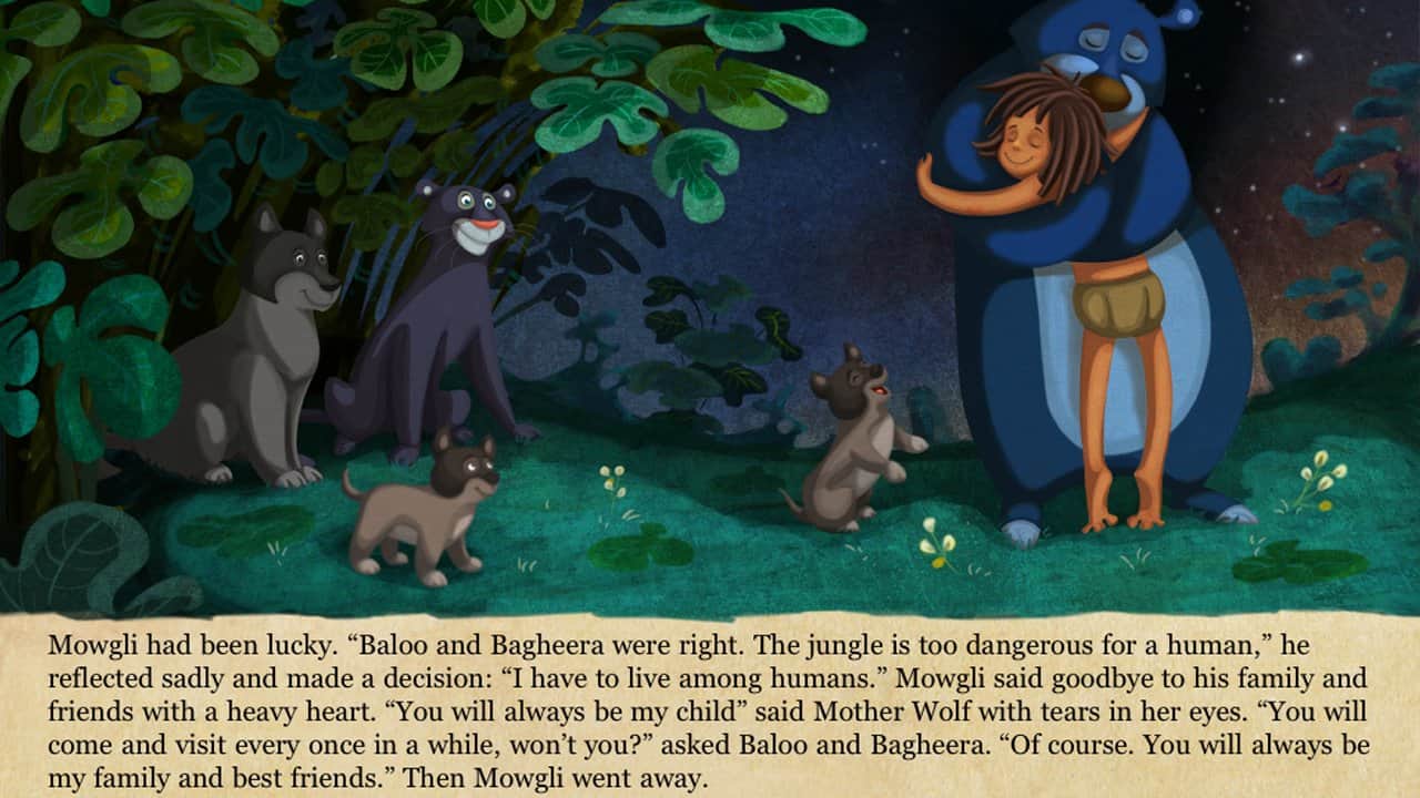 Orman Kitabı – çocuklar için etkileşimli bir oyun, burada çocuğunuz Mowgli ile birlikte tehlikeli yolculuğunu yapabilir. Bu oyunda çocuğunuz, Hindistan'ın ormanlarında kurt sürüsü tarafından büyütülen Mowgli adındaki çocukla yeniden karşılaşacak. Mowgli'nin köyünü yok eden yangından sonra, onun arkadaşları panter Bagheera ve ayı Baloo oldu. Mowgli ile birlikte ormanlarda seyahat edin, ilgi çekici hikâyeleri okuyun ve tehlikeli ormanlarda birlikte hayatta kalmaya çalışın. Bu oyun, modern bir tarzda sunulmuş klasik hikâyeyi size tanıtacak. Oyunda toplam 12 sayfa bulunmaktadır, bu sayfalarda hikâyenin tüm karakterlerini görecek ve anlatıya tamamen dalabileceksiniz; müzik eşliği harika bir atmosfer yaratacak.