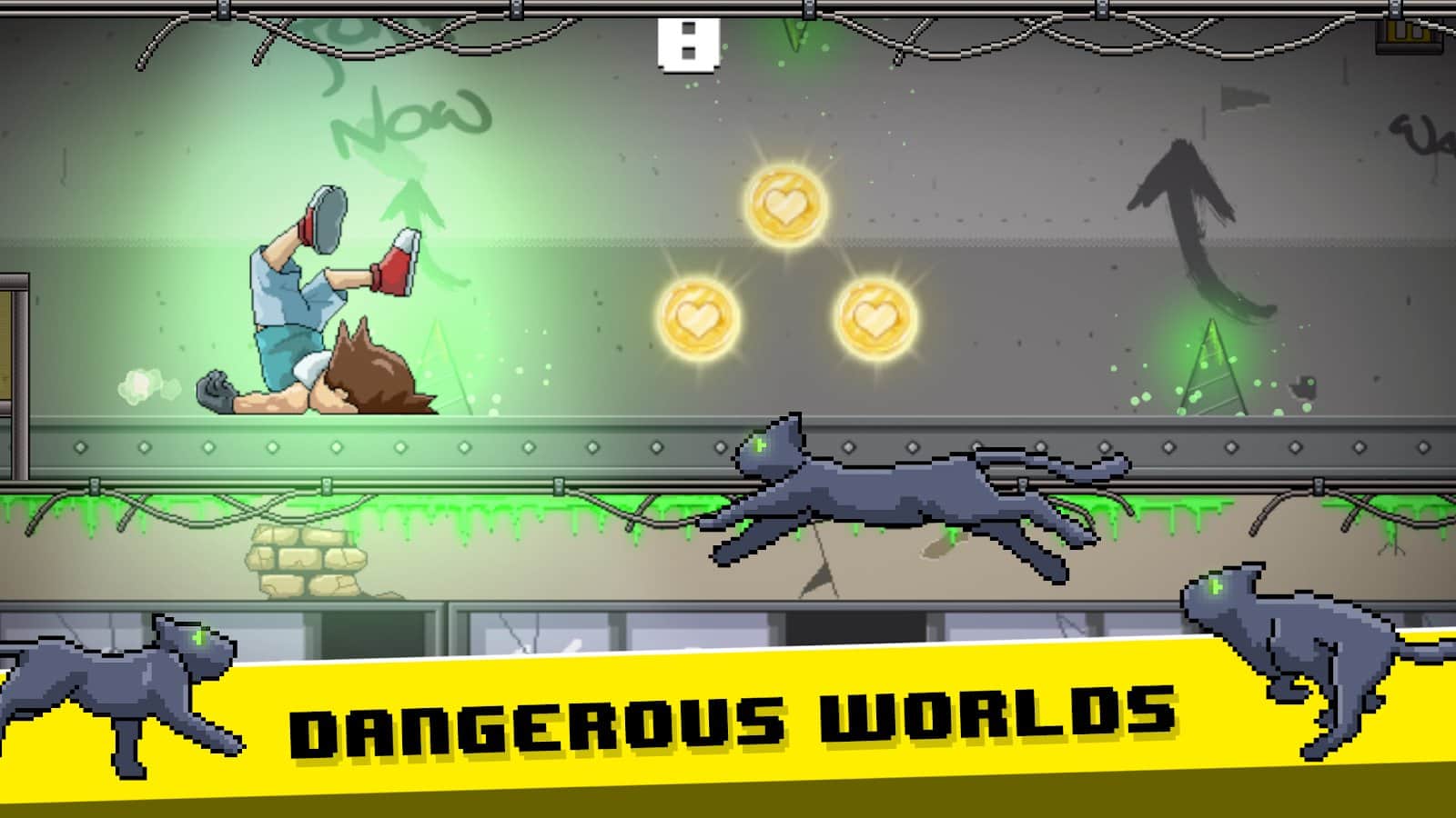 Son Koşucu: Hızla Koş ve Yüksek Atlama – Android için bir koşucu oyunu, burada maceraperest Rey ile terkedilmiş bir şehre giriyorsunuz. Kahramanımız, hazineleri bulmak için enfekte olmuş şehri keşfetmeye karar verdi. Şehrin sokaklarında, binaların çatılarında ve diğer lokasyonlarda koşun, atlayın ve parkur becerilerinizi kullanarak keşfedin. Enfekte olmuş kedilerden, radyoaktif sudan ve diğer engellerden kaçının. Oyun içindeki iki oyun modu, birçok benzersiz lokasyon ve gizli seviyeler bulacaksınız.