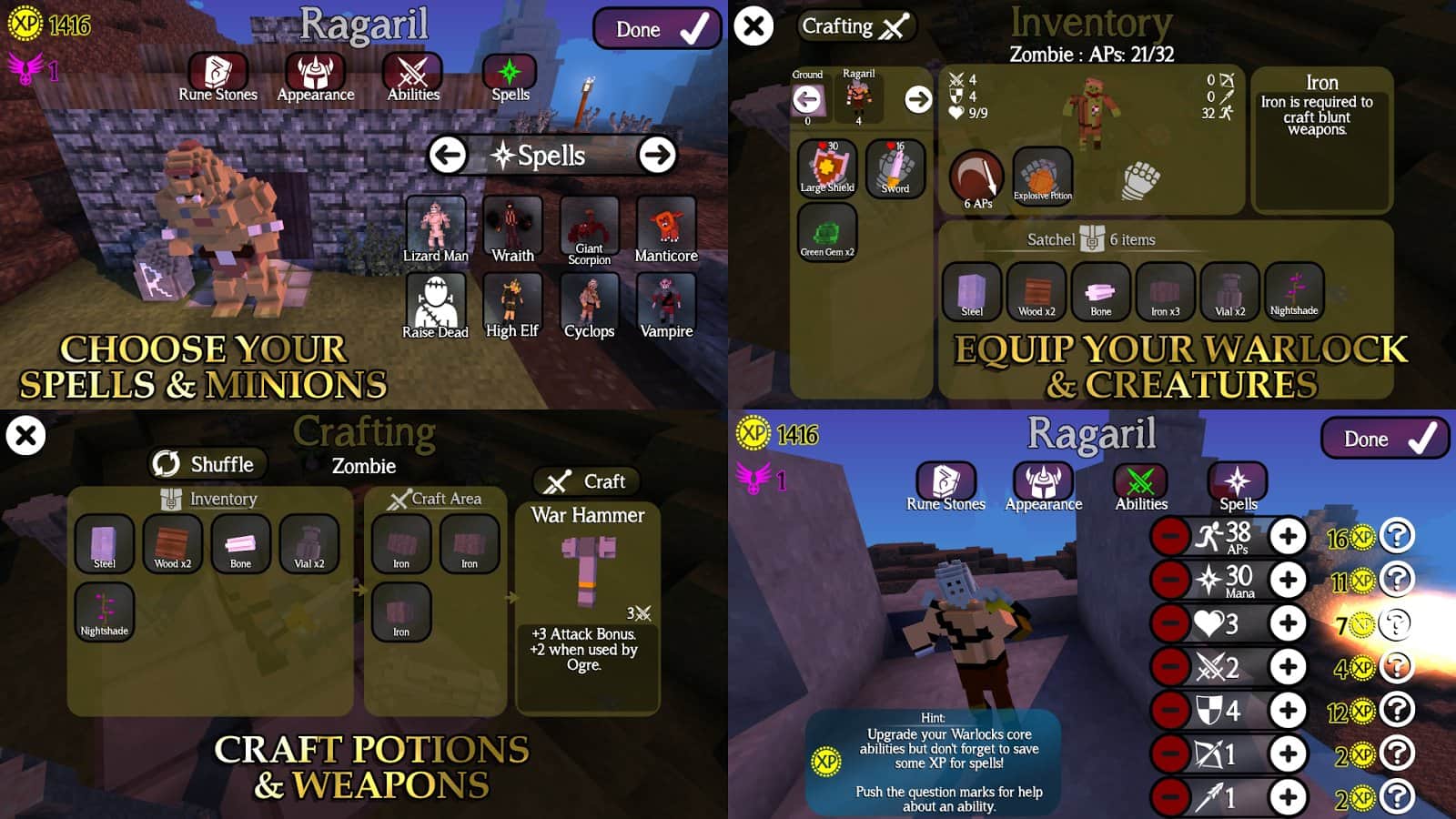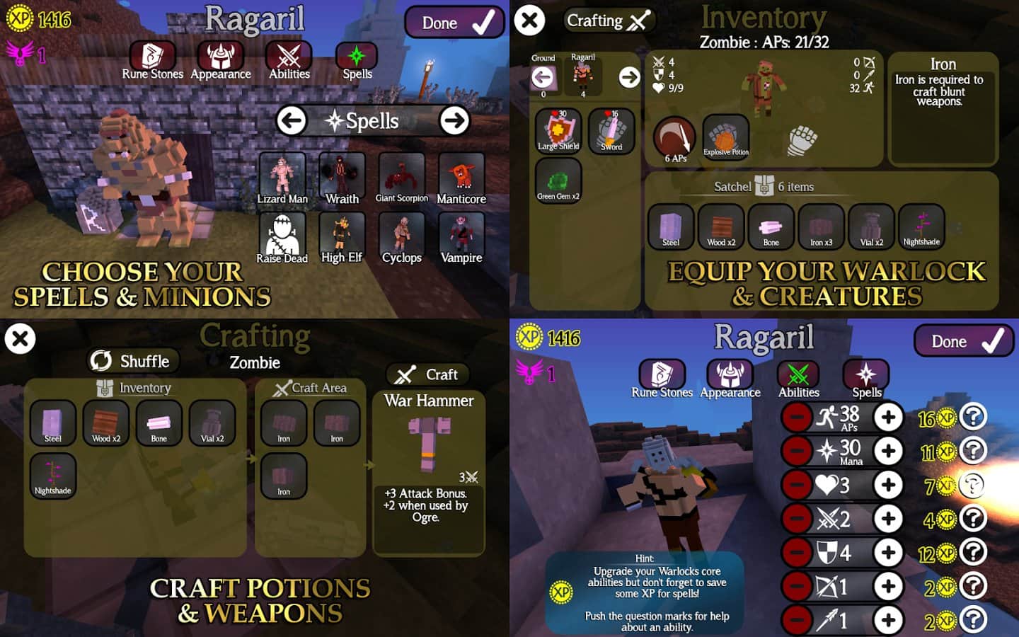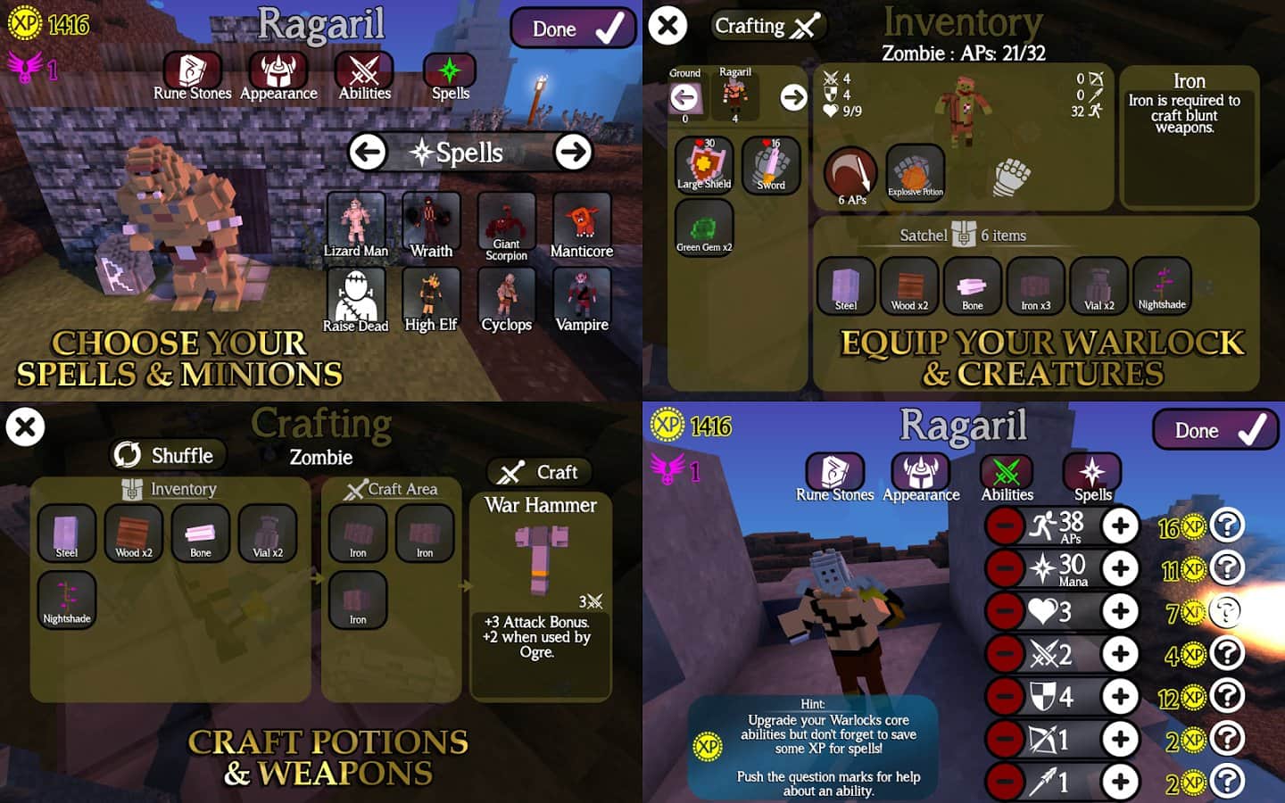 - Kılıç, zırh, kalkan ve iksir yapma imkanı
