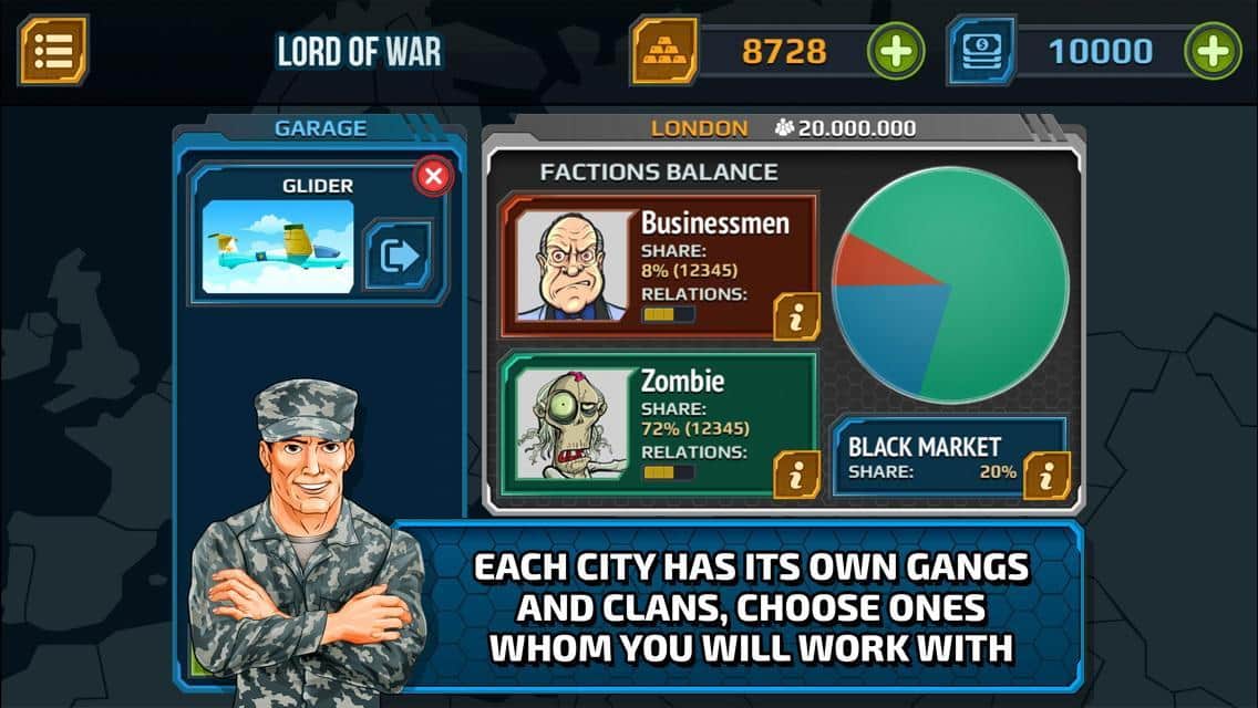 Savaş Lordu - dünyanın en büyük silah baronlarından biri olduğunuzu hayal edin. Hayal ettiniz mi? Şimdi yere inin, bu tür saygın bir unvana ulaşmak için daha kat etmeniz gereken uzun bir yol var. Siz, silah taşımak için küçük bir bot ve birkaç küçük depo ile başlayan önemsiz bir oyuncusunuz. Ama bir gün, sizin için oldukça büyük bir sipariş aldınız - birkaç konteyner silah ve mermi, belirlenmiş yere taşınacak ve oldukça iyi bir ücret karşılığında. Bunun ardından, suç kariyeriniz hızla ve başarılı bir şekilde yükselmeye başlar. Hatta silahlarınızı tedarik ederek politika üzerinde etkili olma durumuna gelirsiniz.