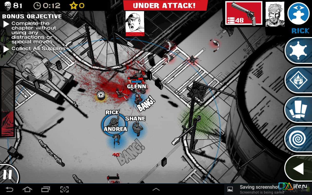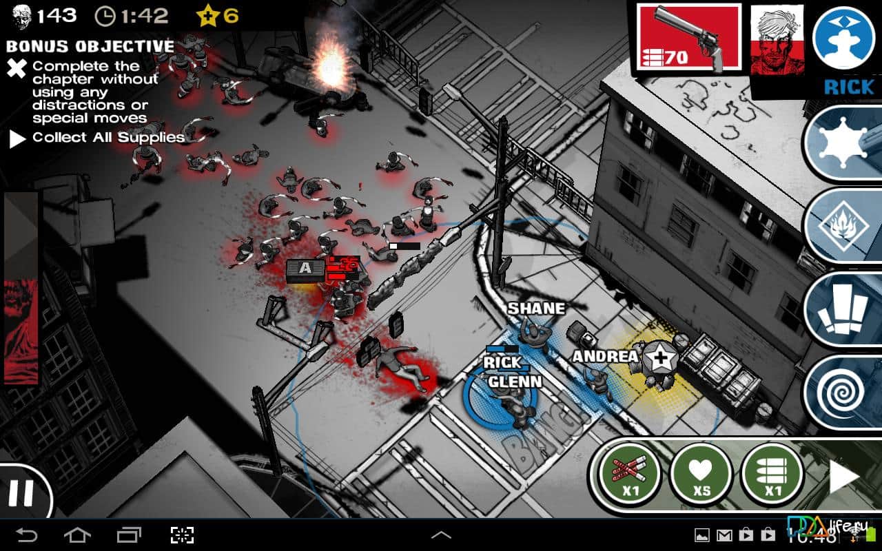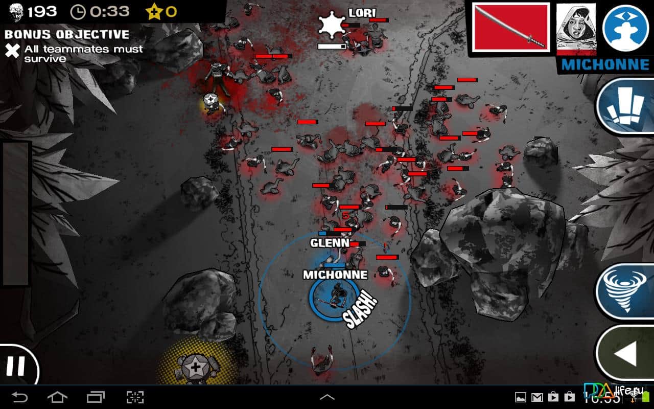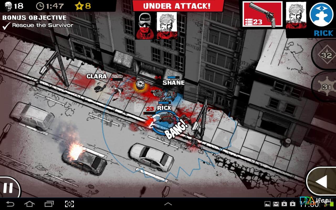 The Walking Dead: Assault - aynı adı taşıyan diziye dayanan bir oyun, şimdi android'de. Dizide olduğu gibi, zombilerle savaşmak zorundasınız. Rick, Glenn, Carl, Andrea, Lori ve diğer sevdiğiniz karakterlerle oynayın, zombilere karşı. Göreviniz, yürüyen ölü ordularına karşı hayatta kalmak için her karakterin benzersiz yeteneklerini kullanarak sığınak, yiyecek ve ilaç bulmaktır.