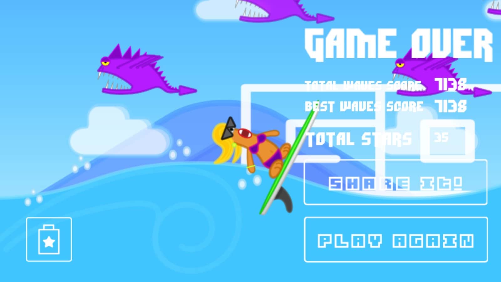 Dalga Sörf Dokunuş Macerası - Android için eğlenceli bir oyun, burada sörfçüye dalgaların üzerinde ileri doğru koşmasına yardımcı olacaksınız. Bu oyun sizi sınırsız yaz atmosferine götürecek, burada eğlenceli bir sörfçüyü kontrol edeceksiniz. Kahramanın, birçok denizanası, deniz yıldızı ve yolda karşılaşacağı diğer engellerden atlamak için doğru zamanda ekranınıza dokunun. Yolda dikkatli olun ve ilerlerken birçok madeni para ve engelleri kolayca aşmanıza yardımcı olacak bonusları toplayın. Oyun boyunca madeni paralar biriktirin ve bunları yeni sörf tahtası satın almak ve eğlenceli kahramanları açmak için harcayın.