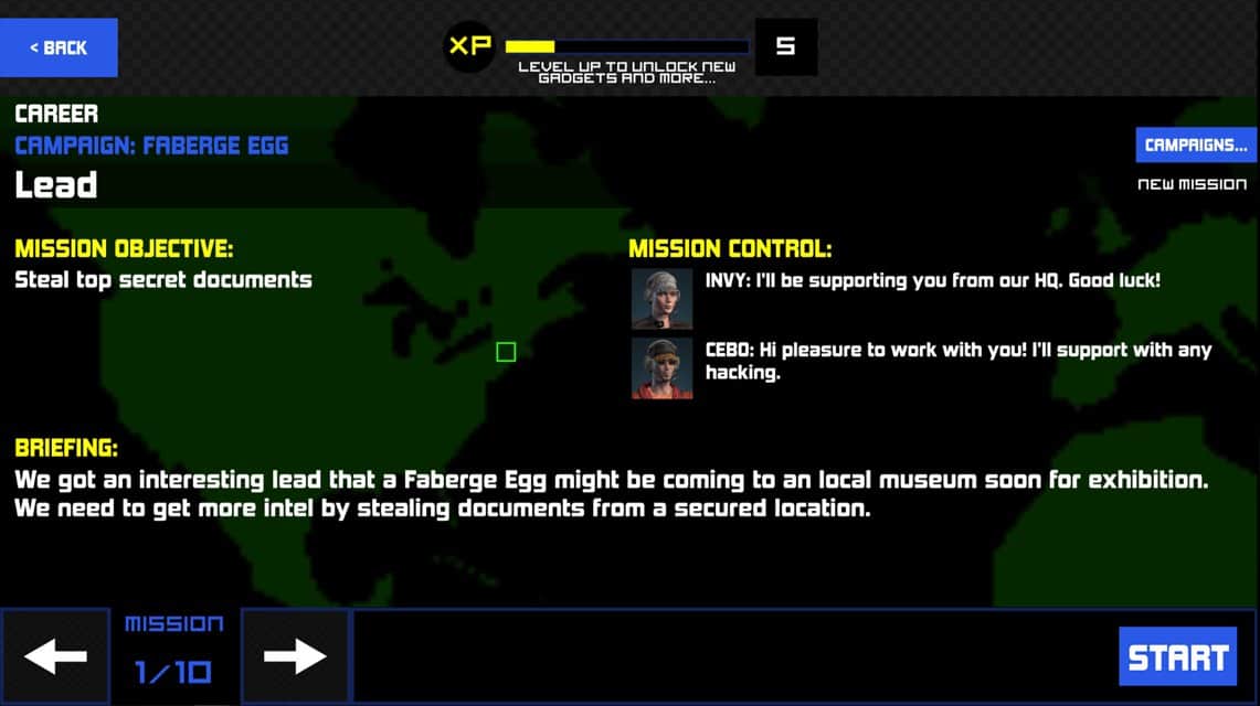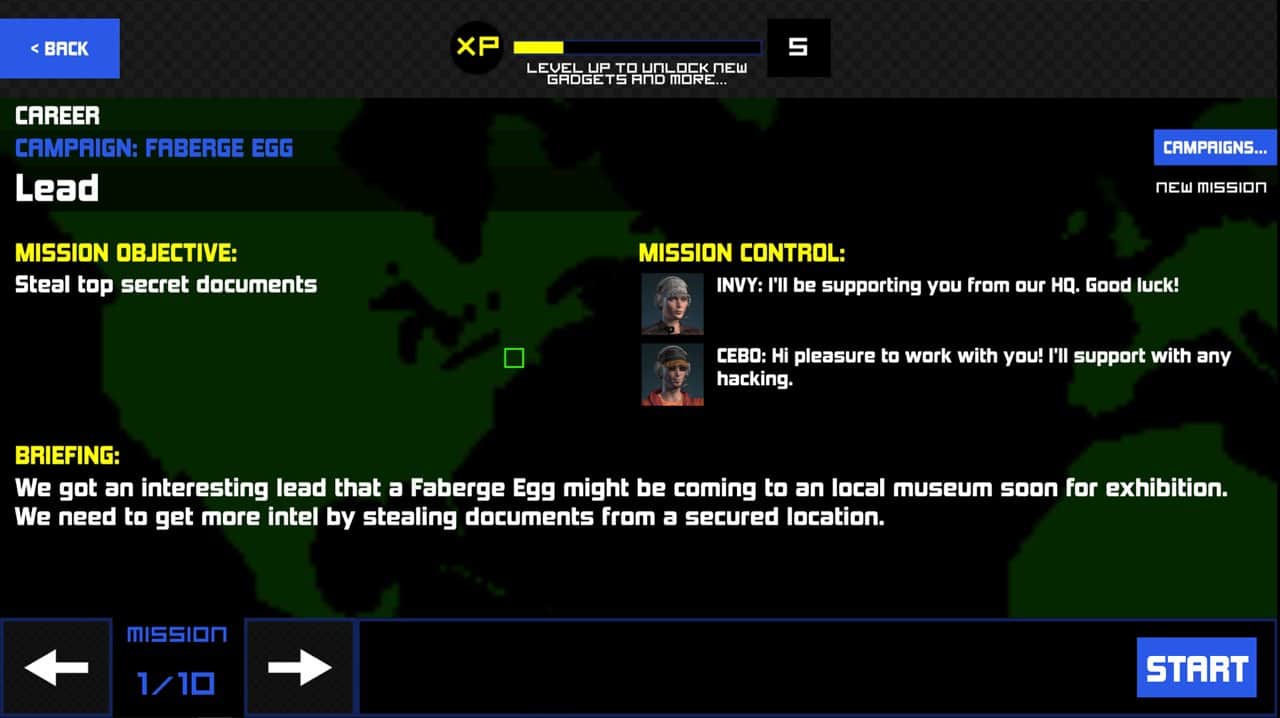 Görüşe çıktığınızda, amacınız sadece gerekli nesneyi çalmak değil, aynı zamanda dikkat çekmeden, kameraları, sensörleri ve güvenlik görevlilerini atlatmaya çalışmaktır; elbette güvenlikleri bayıltarak da başka bir yol izleyebilirsiniz, fakat unutulmamalıdır ki, beden her zaman bulunabilir ve bu durumda görev başarısız olacaktır.