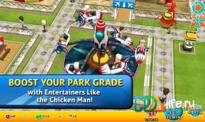 Tema Parkı - EA'dan harika bir oyun, android için. İlk olarak bir miktar para var, bununla ilk atraksiyonları satın alıyoruz, ziyaretçileri bekliyoruz, ilk gelirimiz elde ediyoruz, parkı geliştiriyoruz ve nihayetinde birinci sınıf bir lunaparkınız olacak.