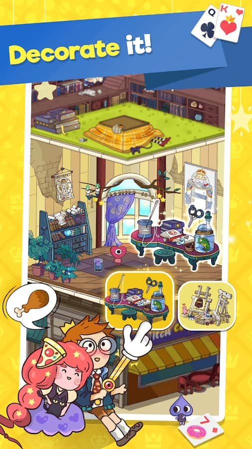 Tema Solitaire - Kule TriPeaks – harika bir solitaire oyunu, Android için, "TriPeaks" oyununu Tema Kule inşa etme sistemi ile birleştiriyor. Bu oyunu oynayın ve solitaire’leri yerleştirerek, kartları oynayarak, kaynakları toplayarak ve benzersiz bir kule inşa ederek heyecan verici oyun sürecinin tadını çıkarın. Bu oyunda masalsı kahramanlarla yeniden karşılaşacaksınız: Pamuk Prenses, Pinokyo, Peter Pan ve daha birçokları. Kule inşa edin ve ona benzersiz bir iç mekan seçin, her odanın eşsiz olmasını sağlayın. Sizi sıkılmaktan kurtaracak ek mini oyunlar oynayın, burada koleksiyon nesneleri toplayacaksınız.