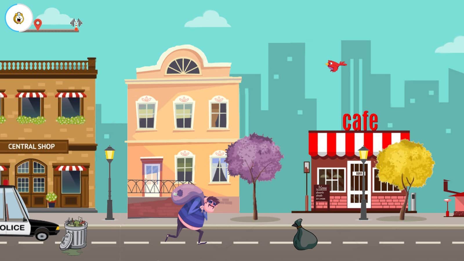 Hırsız macerası - Android için bir arcade oyunu, burada bir hırsıza polisten kaçmasına yardımcı olacaksınız. Bu oyunda, başarısız bir banka soygunu gerçekleştiren bir hırsız rolünde olacaksınız ve şimdi sığınağa ulaşmadan önce uzun bir yol kat etmeniz gerekecek. Şehrin sokaklarında koşun ve yolunuza çıkan birçok engeli aşın, bu arada sizi parayla dolu çanta zorlayacak. Polisten kaçın ve bunu mümkün olduğunca hızlı yapın, çünkü zamanınız sınırlı olacak. Bu oyunu oynayın ve canlı grafikleri ve çeşitli mekanları keşfedin.