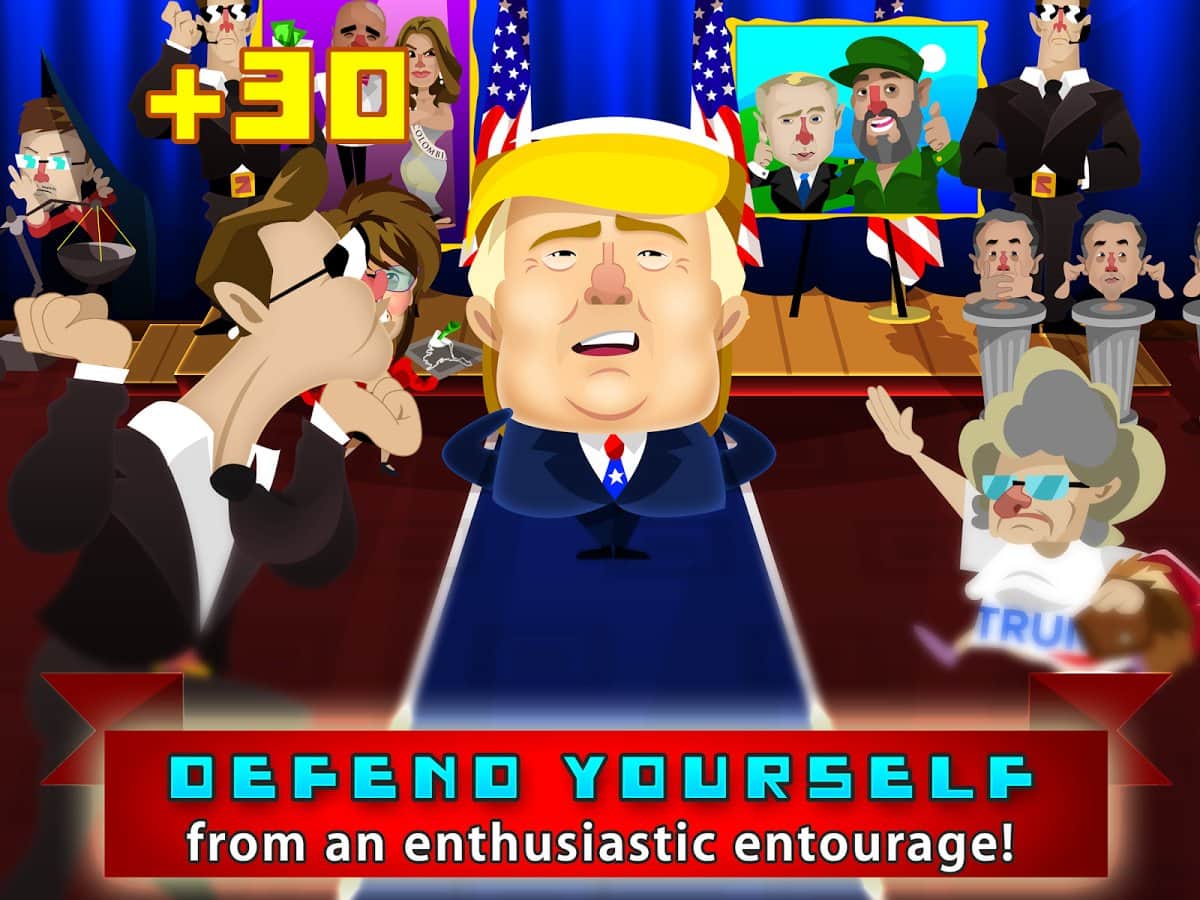 Thump Trump – ABD başkanlığına aday olan Donald Trump hakkında bir oyun. Tartışmalara katılıyoruz, rakiplerimizi dövüyoruz ve başkanlık koltuğuna daha da yaklaşmak için her şeyi yapıyoruz. Oyun, her oyuncuyu kesinlikle güldürecek çok eğlenceli ve renkli bir arcade'dir ve ünlü kişilik Donald Trump, ekrandaki olaylara olan ilgiyi artıracaktır. Oyundaki harika grafiğin yanı sıra, eğlenceli bir müzik parçası, yaşanan eğlenceli kaosa daha da derinlemesine dalmanıza yardımcı olacaktır. İyi oyunlar!