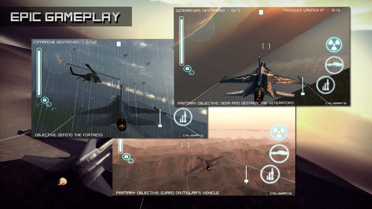 Gök Gürültüsü Sürücüsü - İlk Uçuş - siz hava kuvvetlerinde bir teğmensiniz ve ülkeniz deneyimli bir savaş uçağı pilotuna ihtiyaç duyuyor. Operasyonel personelimizden birinin bildirdiğine göre, askeri bir darbe hazırlanıyor. Göreviniz bir avcı uçağını pilotluk yapmak ve düşmanın füzelerini, ayrıca diğer askeri tesisleri yok etmek. Oyunda, 15 dakika boyunca hayatta kalmanız gereken bir hayatta kalma modu var ve bu süre zarfında mümkün olduğunca çok askeri teçhizatı yok etmelisiniz. Oyun, joystick ile kontrolü desteklemektedir.