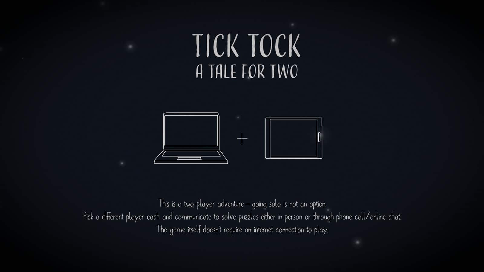 Tick Tock: İki Kişilik Bir Hikaye – Android için bir kurumsal bulmaca, iki oyuncu için. Her oyuncu kendi cihazında oynamalı ve birbirleriyle sesli bağlantı kurarak iletişim sağlamalı. Bu oyunda siz ve arkadaşınız saatler dünyasında sıkışıp kalacaksınız. Zaman acımasızca geçecek ve amacınız bu dünyayı mümkün olan en kısa sürede terk etmek için zorlu bulmacaları ve görevleri çözmek olacak. Oyuncular arasındaki iletişim ve iş birliği çok önemli, çünkü hiç biriniz bu korkunç ve karanlık dünyanın tam haritasına sahip olmayacaksınız. Arkadaşlarınızla oynayın ve boş zamanınızı eğlenceli bir şekilde geçirin.