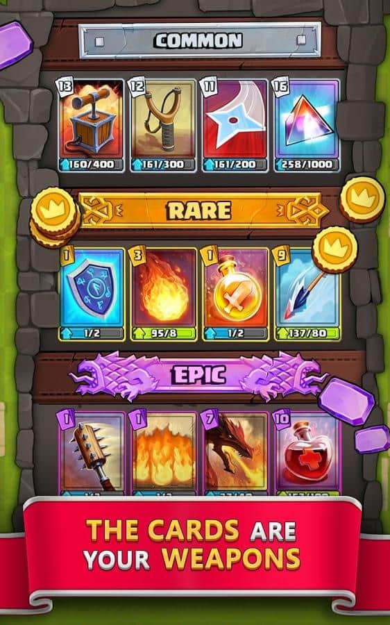 Karo Taktikleri: Kart Savaş Oyunu – Android için bir strateji oyunu, burada dünyanın dört bir yanından oyuncularla adım adım savaşlara katılacaksınız. Bu oyunda, karelere bölünmüş bir alanda yer alacak, kahramanınızı hareket ettirip düşmanlara ölümcül darbeler indireceksiniz. Savaşta çeşitli silahlar kullanın ve rakibinizi yenmek için farklı numaralar ve hileler uygulayın. Başarılı bir savaşın ardından, size ek güç verecek, kahramanınıza ekstra yetenekler kazandıracak ve sihir teknikleri öğretecek kartlar toplayın. Deneyim kazanın ve dünyanın en güçlü oyuncularına meydan okuyun, arenada onları yenerek sıralamanızı yükseltin.