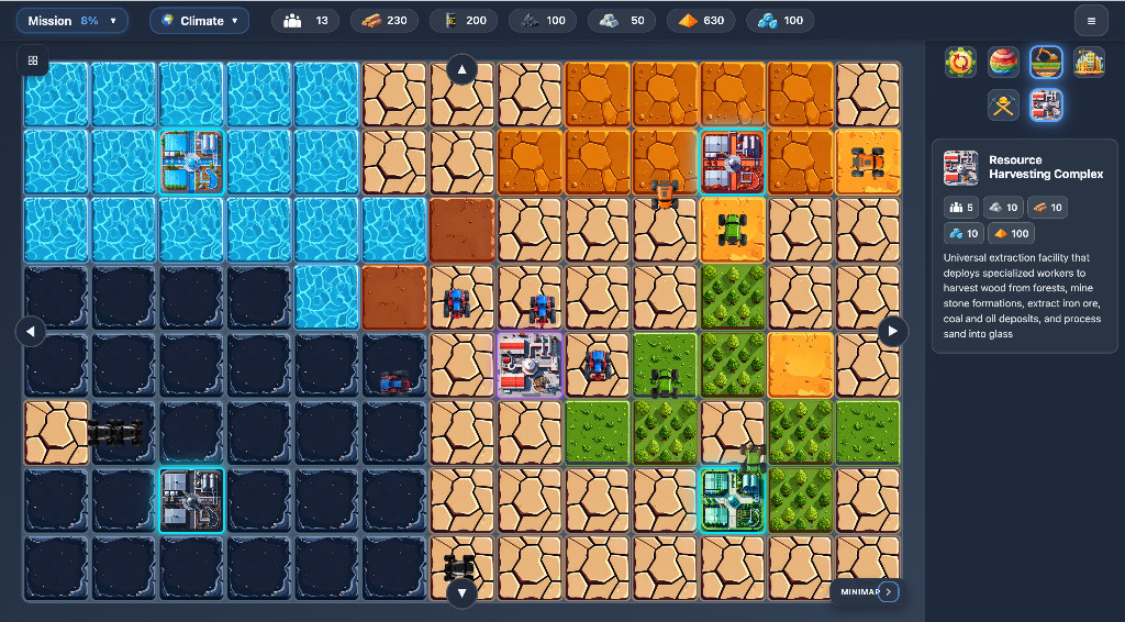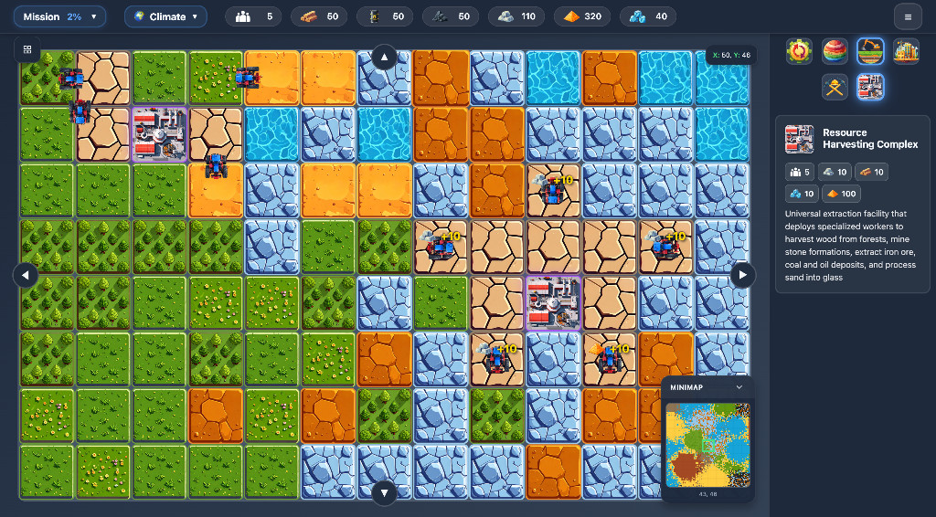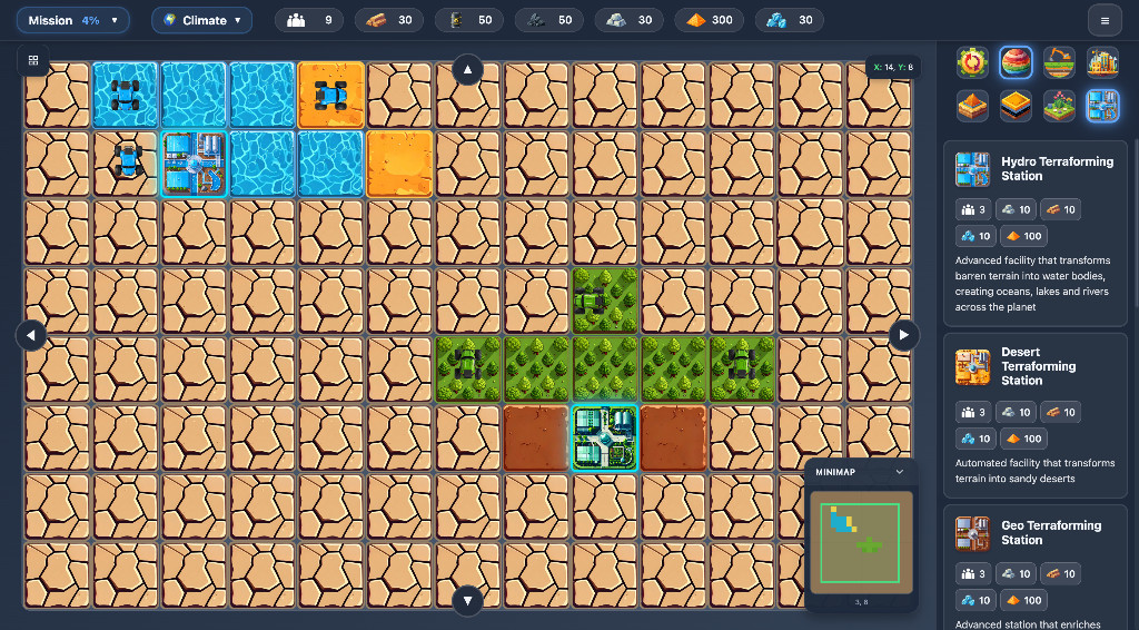 Tilecraft — stratejik bir terraform simülatörü, burada cansız gezegenleri gelişen medeniyetlere dönüştürüyorsunuz. Kaynakları yönetin, şehirler inşa edin, altyapı oluşturun ve ölü dünyaların hayata nasıl kavuştuğunu izleyin. Süreçleri otomatikleştirin, roketler fırlatın ve yeni gezegen sistemlerini keşfedin, adım adım galaksiyi dönüştürün.