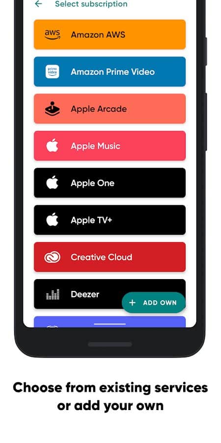 - Herhangi bir yerleşik abonelik seçimi ve yeni abonelik ekleme;