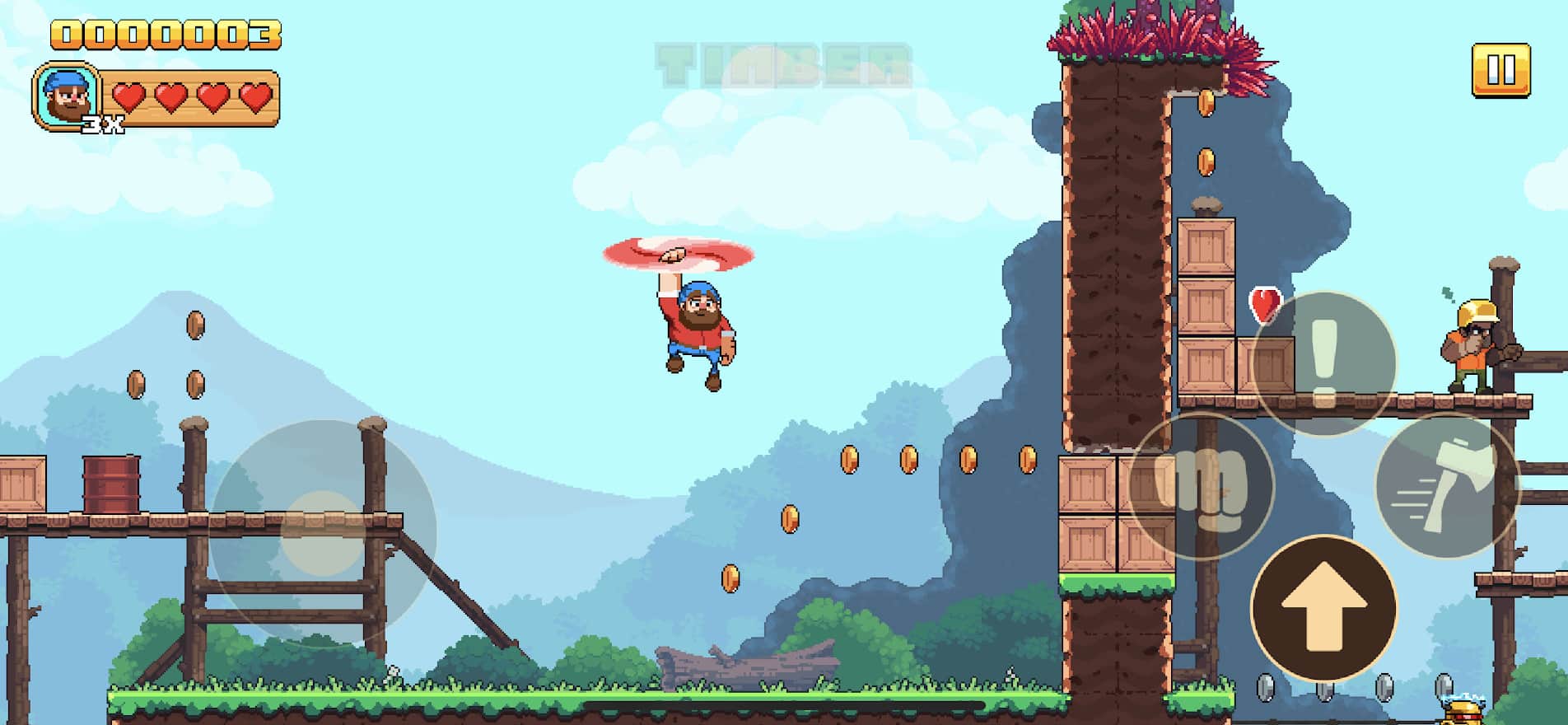 Evil Corp'a meydan okuyun, arkadaşlarınızı ve büyük ormanı kurtarın! Balta ile ağaç kesin, köprüler inşa edin veya balta ile uçun. Sizi 3 farklı dünya, çok sayıda seviye ve eşsiz patron savaşları bekliyor. Kendi ayı arkadaşını akrabalarıyla bir araya getirmeye çalışan ağaç kesicinin zengin hikayesini takip edin. 16-bit piksel grafiğiyle retro tarzında oyun atmosferinin tadını çıkarın. Altın paraları toplayın ve arkadaşlarınıza daha hızlı ulaşmak için devam edin ve onları kurtarın.