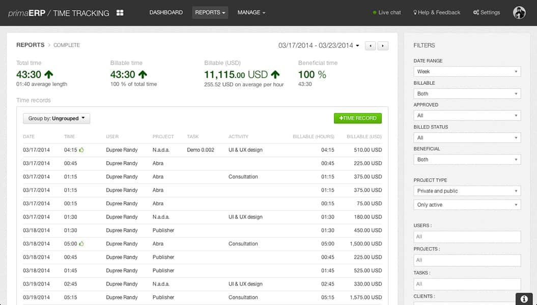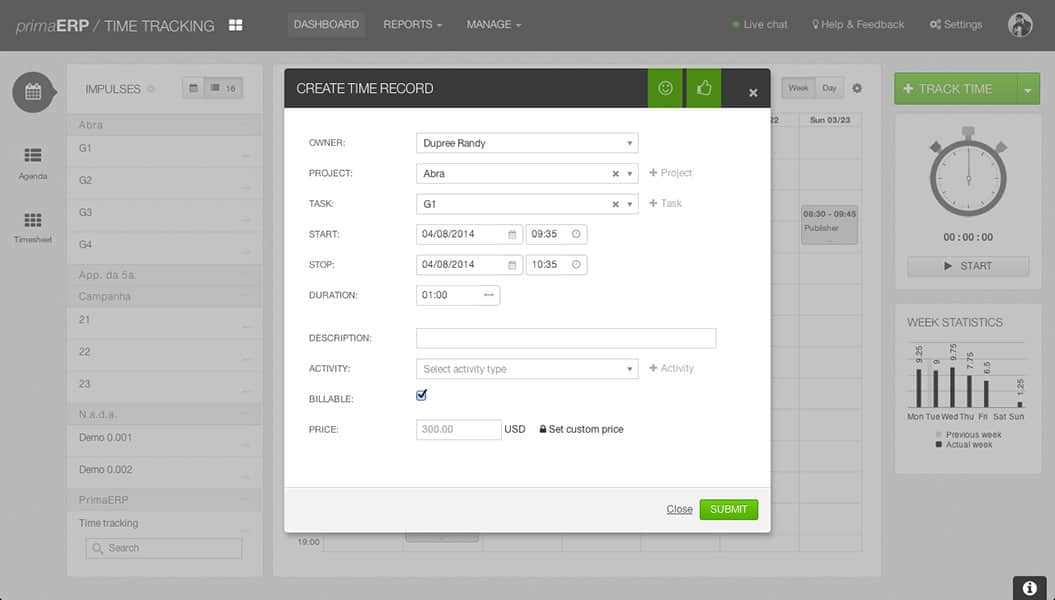 PrimaERP TIME TRACKING
