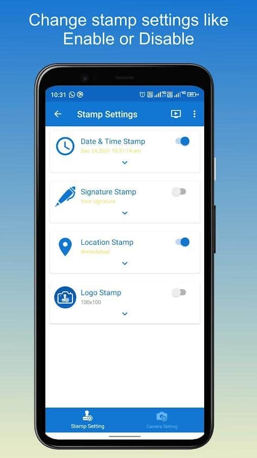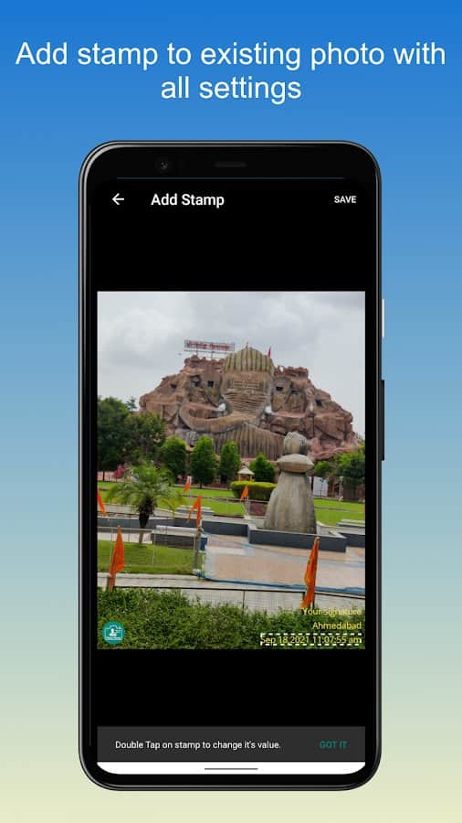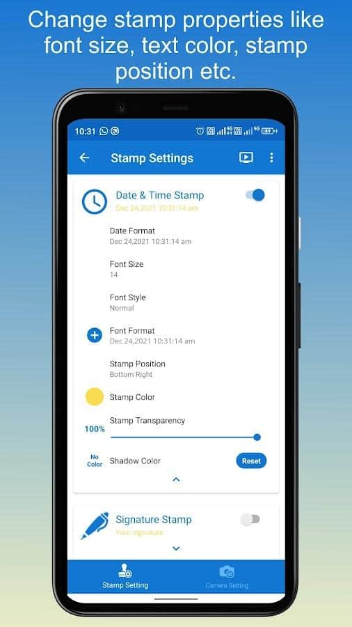 Zaman Damgası Kamerası - Mevcut konumunuzun adresinin ve GPS'in otomatik olarak eklenmesi ayarını açın, isterseniz logonuzu veya mühürünüzü ekleyin, beğendiğiniz bir yazı tipi, renk ve uygun boyutta metni fotoğrafa yerleştirin. Ayrıca, metin içinde kalın, kontur, italik, alt çizgi, üstü çizili, her renkten gölgeler ve metni stilize etmek için diğer özellikleri değiştirebilirsiniz.