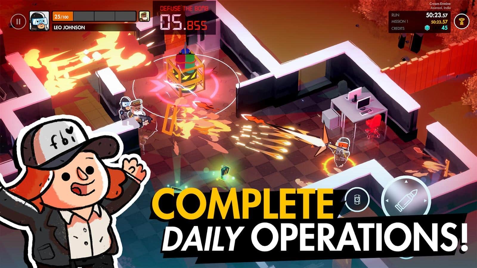 Küçük - Kapıları kırın ve kötü adamların büyük bir bombayı yerleştirdiği binanın içine dalın. Kendi yeteneklerinizi geliştirin, güvenilir ortaklar toplayın ve onların becerilerini güncellemelerine yardımcı olun, böylece genel olarak yenilmez olursunuz. En iyi oyuncuların sıralamasına girin, sürekli olarak diğer rakiplerle rekabet edin, çeşitli skinler ve iyileştirmeler toplayın ve birçok faydalı ödül toplayın. Net stratejiler geliştirin ve onlara sadık kalın, ya da oyunun seyrini sürekli değiştirin, farklı kararlar alarak.