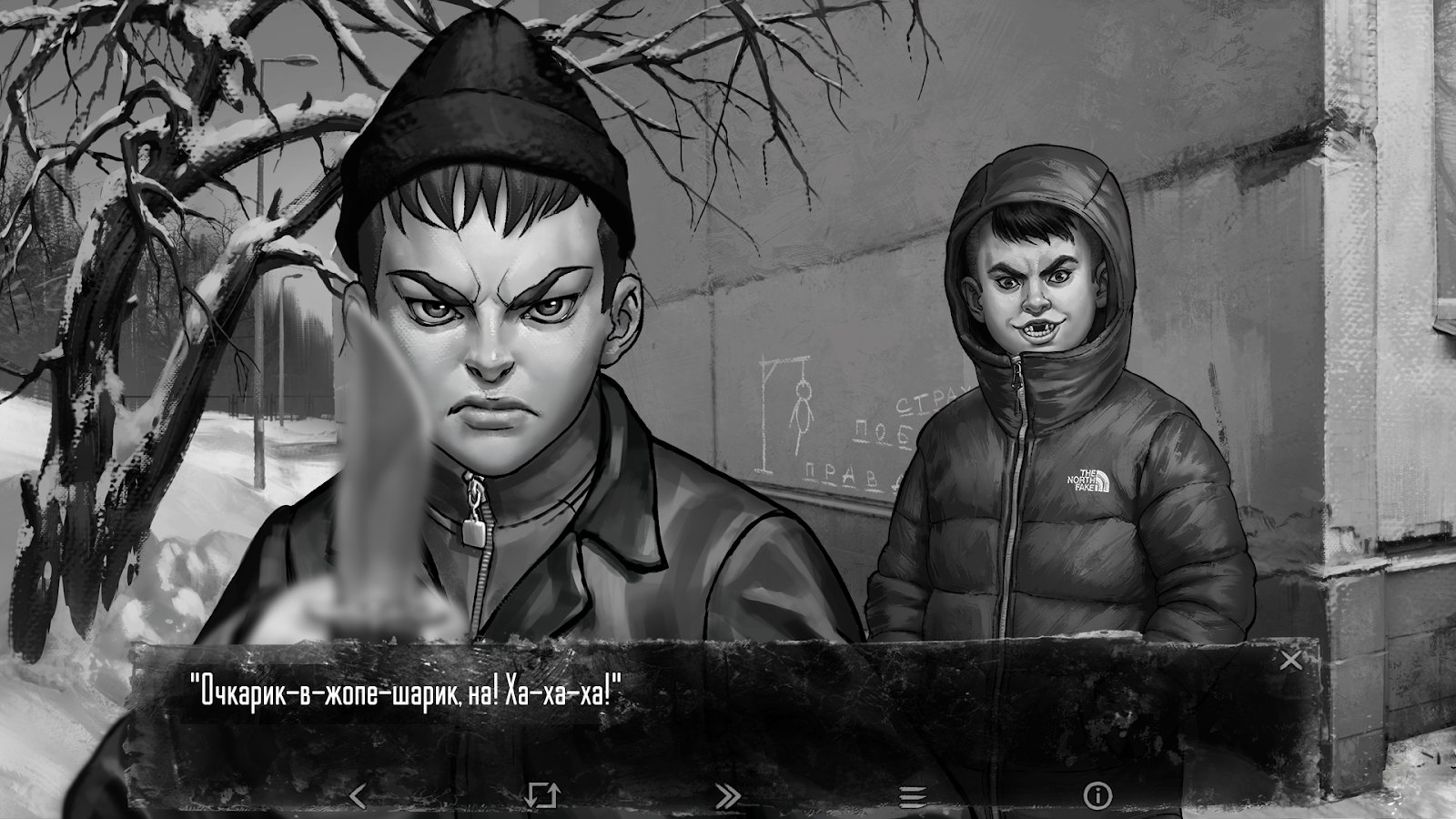 Oyun, siyah beyaz görseller kullanıyor ve üç şey üzerine inşa edilmiş: gerilim, seçimler ve ağaçların arasında gizlenen şeyin sessiz dehşeti. Geceleri ormandan fısıltılar gelir, pencerelerde yabancı yüzler belirir ve kardaki ayak izleri hiçbir yere varmaz. Anton yalnızca dış tehditle değil, kendi korkularıyla da yüzleşmek zorunda. Hikaye, on dokuz farklı sona ulaşabiliyor.