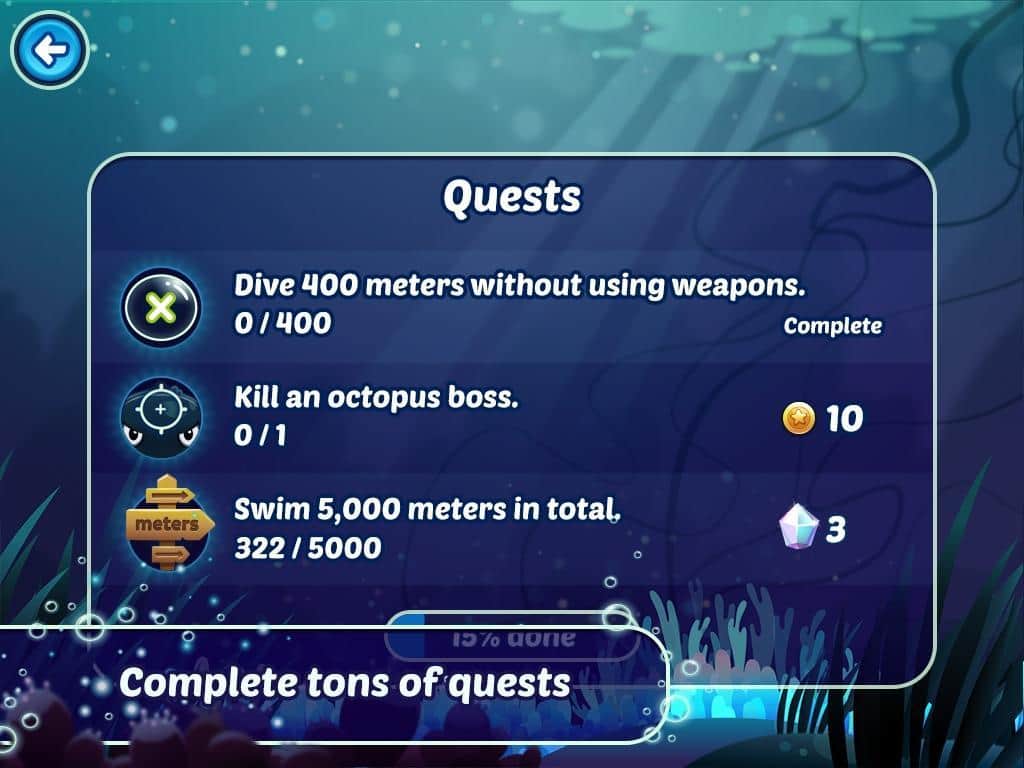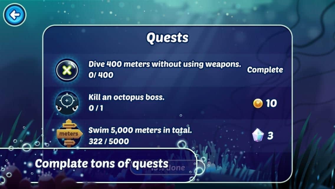 Küçük Dalgıç - Genç bir dalgıç hakkında Android için harika bir arcade oyunu. Deniz derinliklerini keşfetmeniz, çeşitli görevleri ve görevleri yerine getirmeniz gerekecek. Oyun boyunca, ekipman satın almak için kullanabileceğiniz paraları toplamayı unutmayın. Oyunda harika bir çizgi film grafiği ve her yaştan insanın hoşuna gidecek çok keyifli bir oynanış kullanılmıştır.