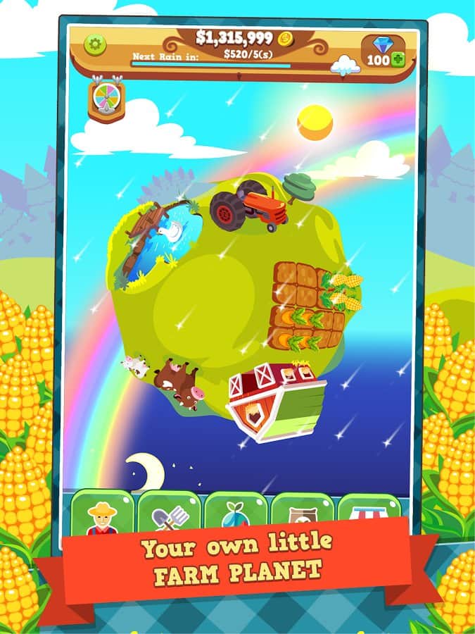 Küçük Tarım Gezegeni – Android için bir oyun, burada çiftçi olabilir ve bu zor işte kendinizi test edebilirsiniz. Bu oyunda çiftlik olarak bir gezegen kullanacaksınız, onu çeşitli ürünlerle ekin, ağaç dikin ve evcil hayvanlar yetiştirin. Çiftliğinizi hayatınızın en karlı işi haline getirin ve sebze, meyve ve hayvan satışından büyük kazançlar elde edin. Çiftlik işlerinizi yürütmek için size yardımcı olacak değerli çalışanlar kiralayın. Harika mahsuller için ödül olarak çeşitli geliştirmeler ve bonuslar alın ve oyunun sunduğu sayısız görevi yerine getirin.