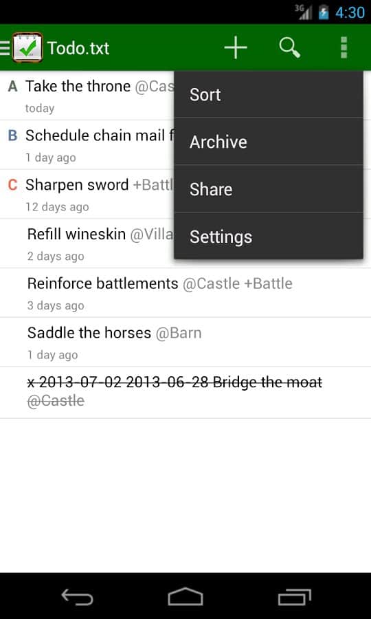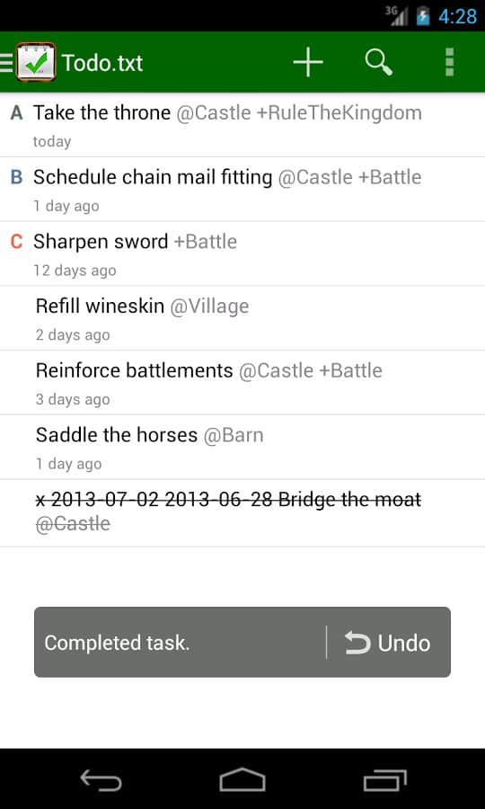 Todo.txt - Birçok ek özellik bulacağınız kullanışlı bir metin editörüdür. Bu uygulamayı sıradan bir not defteri olarak kullanabilir veya kendiniz için tüm gün boyunca bir program oluşturabilirsiniz. Ayrıca, önemli işler hakkında sizi bilgilendirecek ve işleri öncelik sırasına göre ayarlamanıza olanak tanıyacak, daha önemli olanlar öne alınacaktır. Farklı filtreler aracılığıyla liste yönetimi, uygulama ile çalışmayı genel olarak önemli ölçüde iyileştirir.