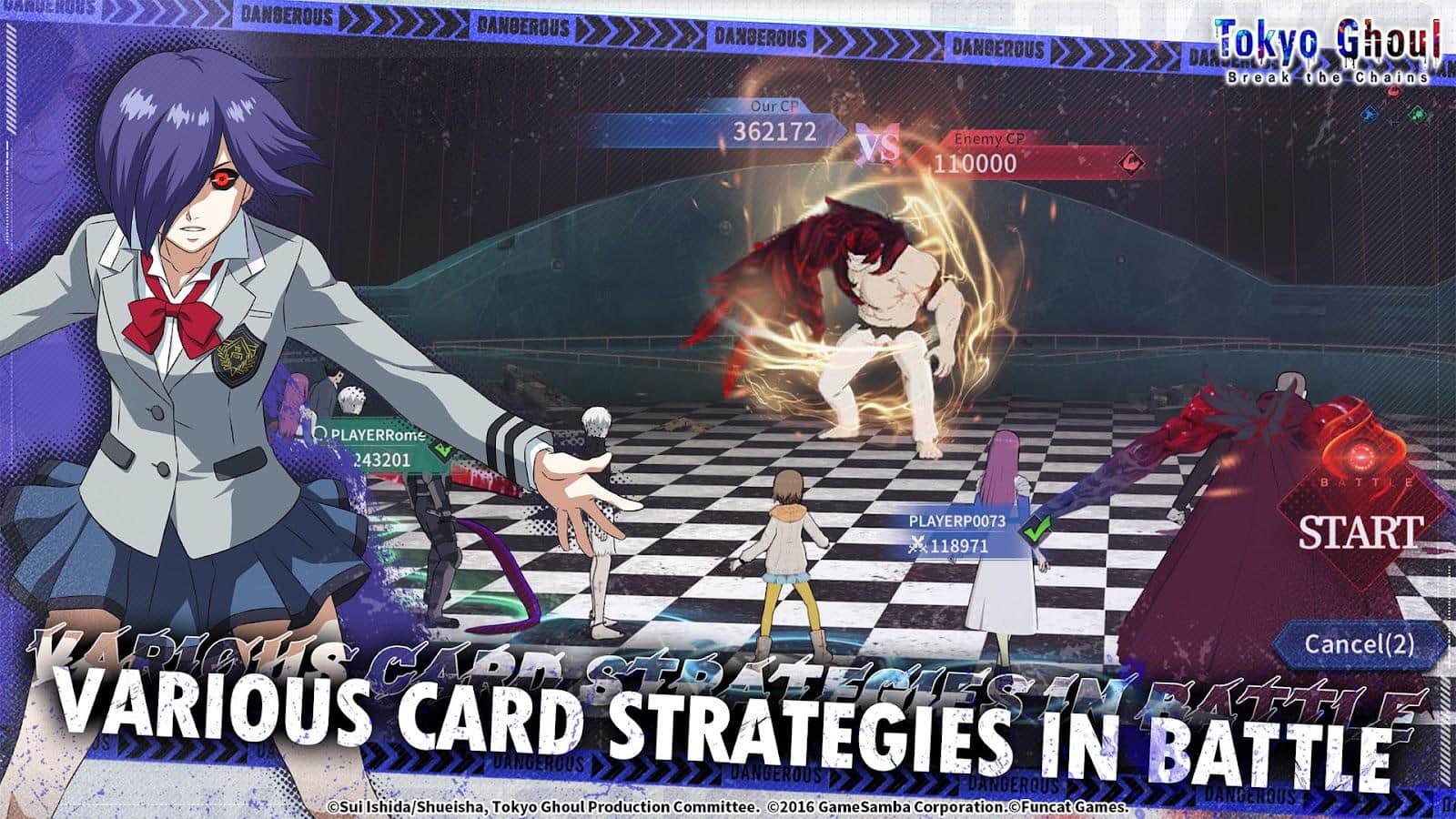 Tokyo Ghoul · Zincirleri Kır – karanlık ve heyecan verici manga dünyasına dalış yapmanı sağlayan bir mobil oyundur. Görünmez yırtıcılar, insan etine susamış vampirler, gece sokaklarında dolaşmaktadır. Ken Kaneki, sessiz bir kitap kurdu olarak, ortak ilgi alanları, hayalleri ve yalnızlıkları olan kendisine benzeyen bir kızı tanıdığı "Anteiku" adlı samimi kafede teselli bulur. Ancak kader acımasızdır. Bir kitapçıda gerçekleşen talihsiz bir buluşmanın ardından, Ken’in hayatı altüst olur. Bir kaza, bir vampirden organ nakli – bildiği dünya yıkılır. Onun damarlarında bir canavarın kanı akmaktadır. Ken, yeni doğasına karşı bir tiksintiyle ve karanlık tarafa olan çekimiyle savaşıyor. İnsan ve ghoul arasındaki sınırın silindiği, hayatta kalmanın tek yasası olduğu acımasız bir gerçeklikte sıkışıp kalmıştır.