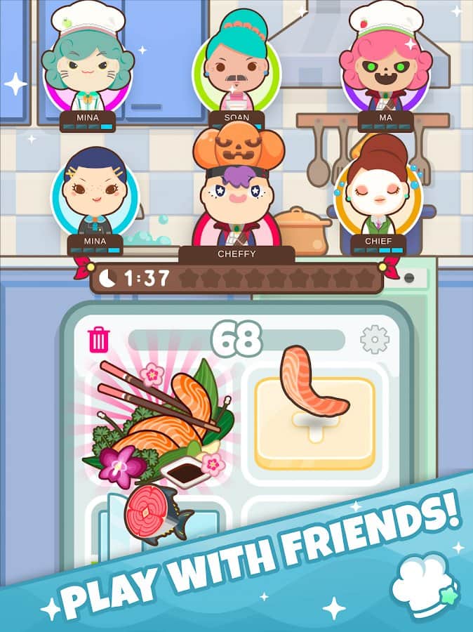 Çok Fazla Aşçı - her türlü lezzeti yaratabilen kendi aşçınızı oluşturun! Mutfak açın ve misafirler için lezzetli yemekler pişirin, böylece memnun kalırlar. Sürekli olarak ustalık seviyenizi artırın ve aşçınızı dövüşlere gönderin, burada sadece kazanma ve ödül alma şansı değil, yemek hazırlama sürecini hızlandırma şansı da olacak. Kendinize özgü bir stil bulun ve buna sadık kalın, böylece rakipleriniz arasında öne çıkarsınız; bu sayede müşteriler kendiliğinden gelecektir ve mutfağınızı tanıdıkları diğer insanlara önerecektir.