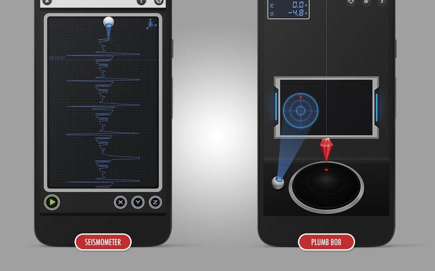 - Set, 14 farklı aracı içerir (yükseklik ölçer, barometre, desibel, pusula, teslametre, metronom, zamanlayıcı, kronometre, daldırma, sismometre, seviye, cetvel, açıölçer, su terazisi)
