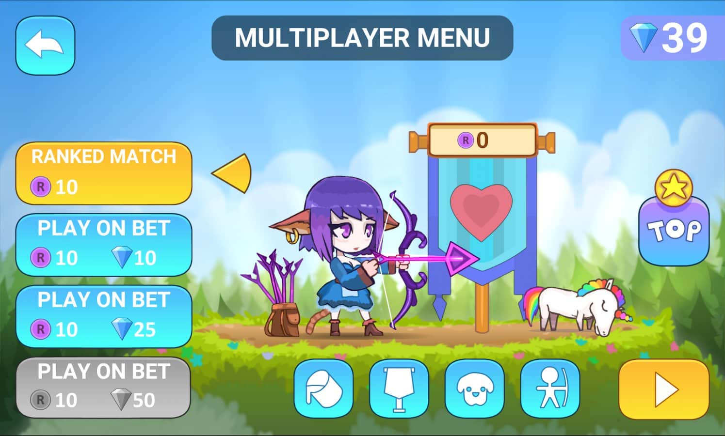 En İyi Okçuluk – Android'de hedeflere ok atma oyunu, birden fazla oyun modu ile. Okçuyu kontrol altına alın, hedeflere ok atın ve puan toplayın. Ne kadar çok puan kazanırsanız, karakterinizi özelleştirme, evcil hayvan edinme, bir tribün inşa etme ve buraya birçok taraftar yerleştirme gibi daha fazla bonus açacaksınız, ayrıca şehri tanınmaz hale getirme imkanı bulacaksınız. Ekrana parmağınızla bir kez dokunarak hedeflere ok atın ve sıralamanızı yükseltin. Çok oyunculu modda oynayın ve en güçlü oyunculara meydan okuyun, onları yenerek ödüllerini ve altınlarını alın.