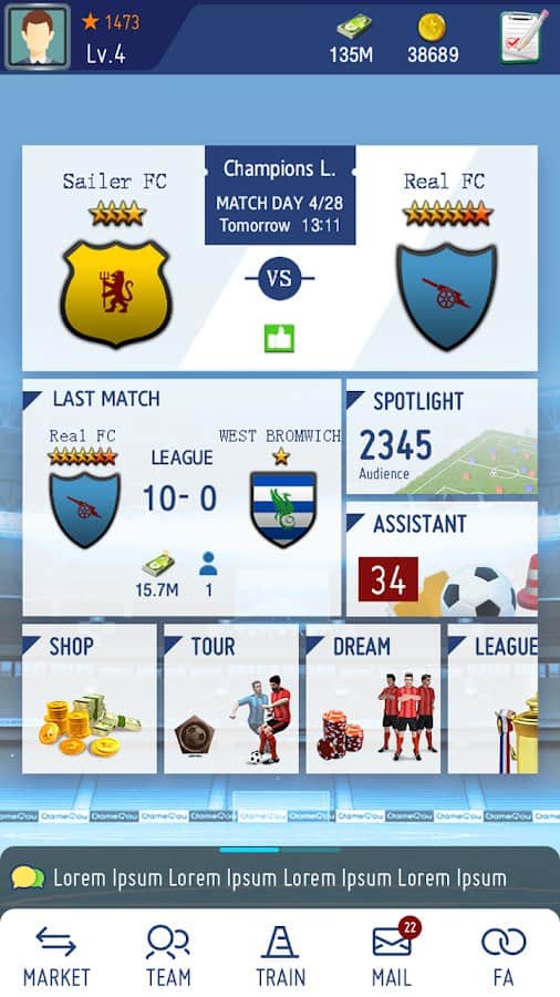 En İyi Futbol Menajeri - Android için bir futbol menajeri oyunudur, burada bir futbol takımının teknik direktörü rolünü üstleneceksiniz. Bu oyunda, on bir oyuncudan oluşan futbol takımını kontrol altına alacak ve onları dünya şampiyonasında zaferle taçlandıracaksınız. Takımınızı eğitin, yenilmez bir strateji ve pas taktiği geliştirin ve en iyi sonucu almak için sahada oyuncuları değiştirin. Dostluk maçları oynayın ve deneyim kazanın. İyi performans sergileyen genç futbolcuları avlayın ve takımınızı yeni oyuncularla güçlendirin. Dünyanın dört bir yanındaki gerçek rakiplere meydan okuyun ve arkadaşlarınızla oynayın.