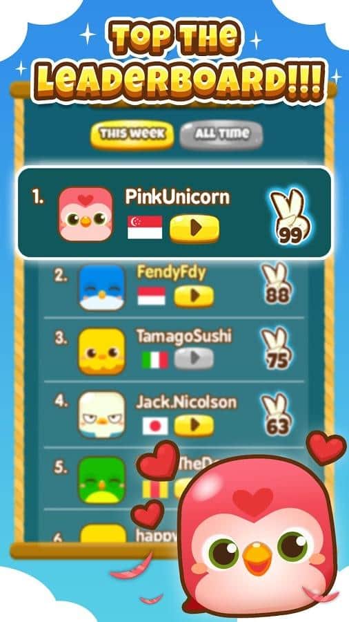 TORIKO: Bulmaca PVP Oyunu – Android için üçlü eşleştirme türünde bir oyun, burada kuşlardan sıralar oluşturacaksınız. Telefonunuzun veya tabletinizin ekranında parmağınızla kaydırarak kuşları sıralara yerleştirin, ekranı onlardan temizlemeye çalışın. Kuşlar ekranınızın üst kısmında belirecek ve göreviniz onları patlatarak tüm boş alanı doldurmalarına izin vermemek olacak. Ekranı mümkün olan en hızlı şekilde temizlemeye çalışarak zekanızı ve parmak hızınızı geliştirin. Dünyanın dört bir yanındaki en güçlü oyunculara meydan okuyun ve onlarla düellolar düzenleyin. Dondurma, bombalar ve patlamalar gibi birçok güçlendirme ve bonusu kullanın. Liderlik tablosunda daha da yükseğe çıkın ve heyecan verici oyun deneyiminin tadını çıkarın.