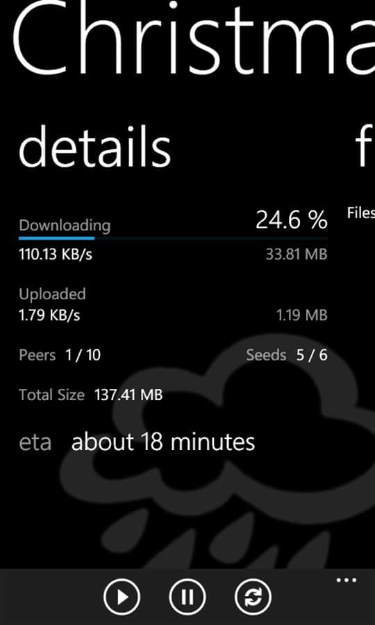 Torrential - Windows Phone için çok işlevli bir Torrent uygulaması. Artık dosyaları indirmeniz daha da kolaylaştı, cihazınızla gerekli tüm özelliklere sahip torrent dosyalarını tamamen indirebilirsiniz, bu özellikler arasında indirme, duraklatma, devam etme ve dosyaları silme bulunmaktadır.
