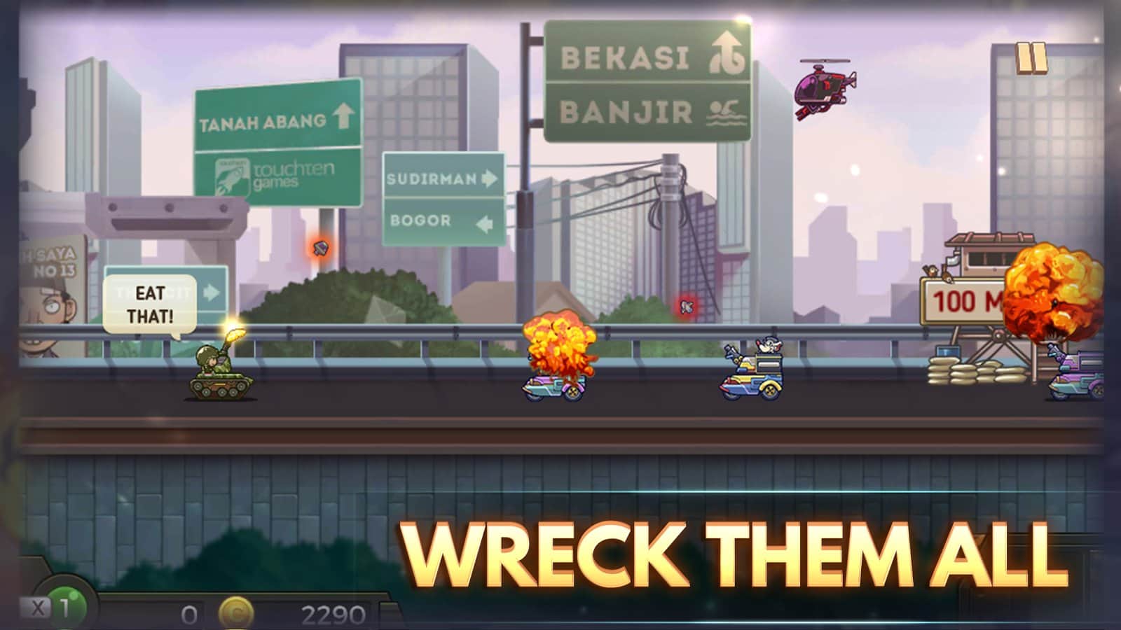 Dokunma Tankı – savaş tankınızı kontrol altına alın ve oyundaki tüm alanlarda düşmanları yok edin. Tankınızı güzel alanlarda ileriye götürün ve mermilerin uçuş yolunu kontrol edin, böylece hedefe tam isabetle ulaşsınlar. Ormanlardan, zindanlardan, şehir sokaklarından, sonsuz buzla kaplı topraklardan ve şeker ülkesinden geçin ve yolunuza çıkan tüm düşmanları yok edin. Merminin uçuş yolunu doğru bir şekilde belirlemek için telefon veya tablet ekranına dokunun, hedef belirlendikten sonra parmağınızı bırakın ve ateş edin. Başarılı görevler için ödüller ve bonuslar kazanın ve oyunda 30'dan fazla tankı açın.